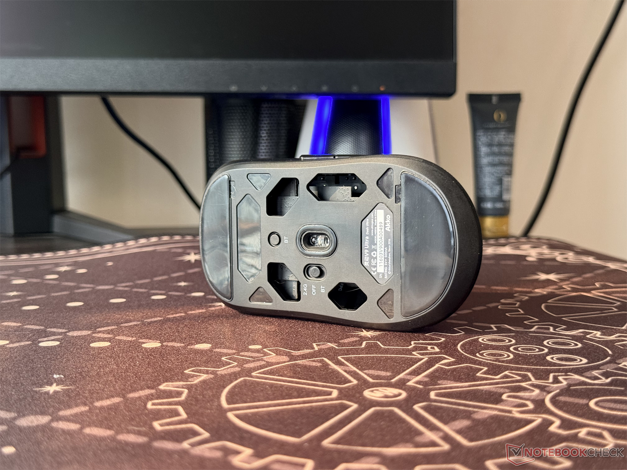 Uma bateria de 300 mAh alimenta os componentes internos do Akko V9 Dash Ultra, que tem a mesma capacidade da bateria do Corsair M75 Air que eu estava usando anteriormente. No entanto, o Dash Ultra pode oferecer um tempo de execução maior em comparação, especialmente no modo de 2,4 GHz com a taxa de polling reduzida para 1 kHz. A Akko diz que o tempo de execução em tal configuração pode chegar a 84 dias após uma carga completa.