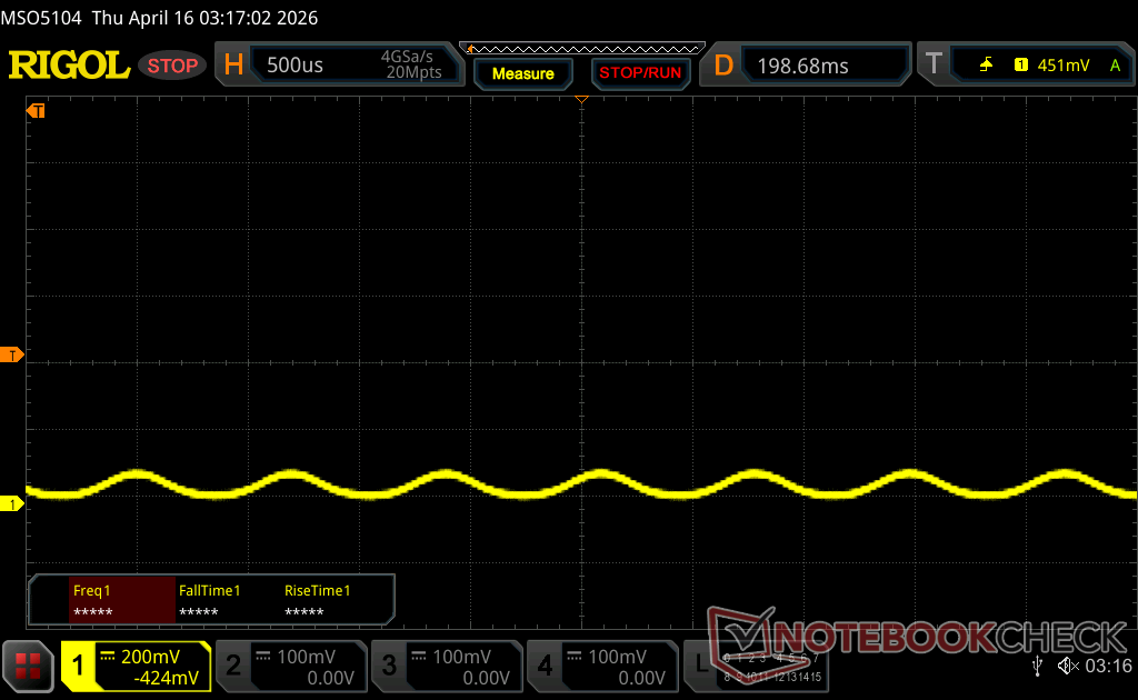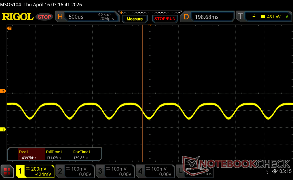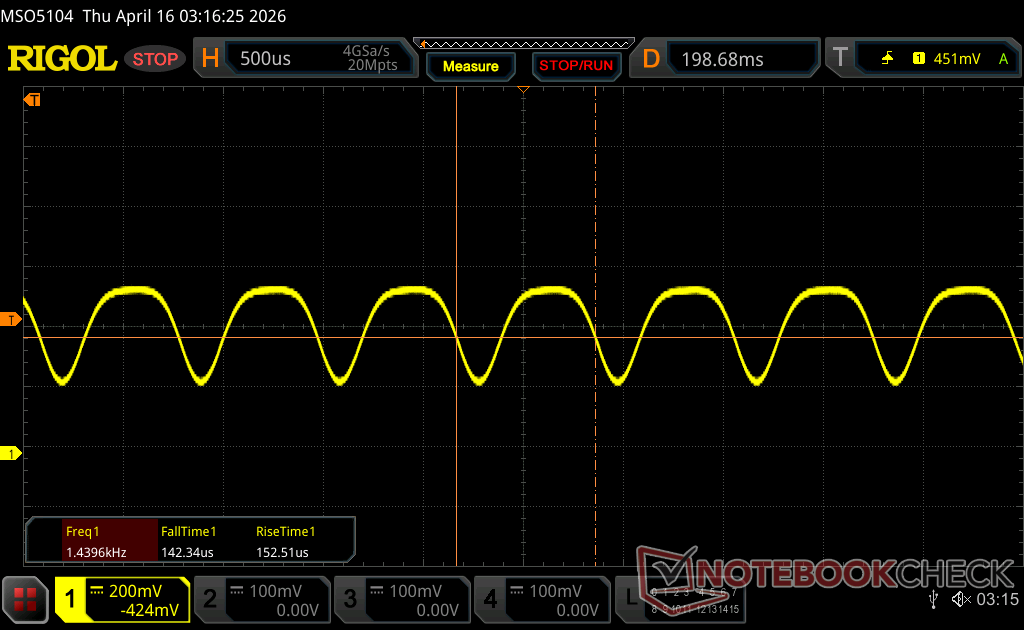 | A tela mostra taxas de resposta muito rápidas em nossos testes e deve ser muito adequada para jogos em ritmo acelerado. Em comparação, todos os dispositivos testados variam de 0.1 (mínimo) a 240 (máximo) ms. » 0 % de todos os dispositivos são melhores. Isso significa que o tempo de resposta medido é melhor que a média de todos os dispositivos testados (20 ms). | ||