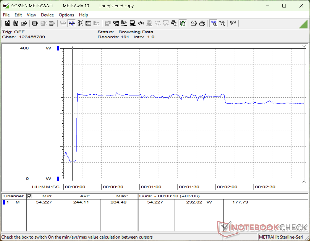 O Core Ultra 9 290HX Plus é de 15% a 25% mais rápido do que o Core Ultra 9 275HX anterior, conforme mencionado acima. Não por acaso, nosso Alienware 16 2026 é de 15% a 25% mais exigente do que o Alienware 16 2025 quando a CPU está sob estresse. A execução do Prime95 no modelo mais recente do Alienware consome cerca de 255 W quando o Turbo Boost é mais eficaz ou 230 W quando o Turbo Boost atingiu o platô, em comparação com apenas 200 W no modelo do ano passado. Mesmo quando não está jogando, o modelo mais novo é geralmente mais exigente, com pelo menos alguns watts a mais.