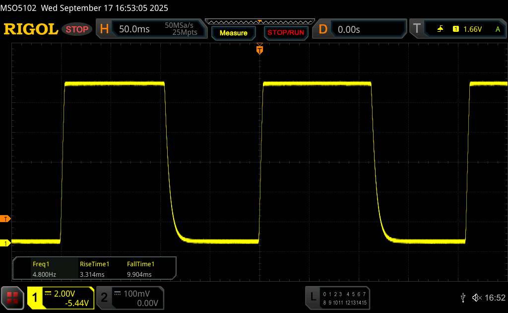 Como ponto positivo, a tela não apresenta nenhuma cintilação sob o osciloscópio.