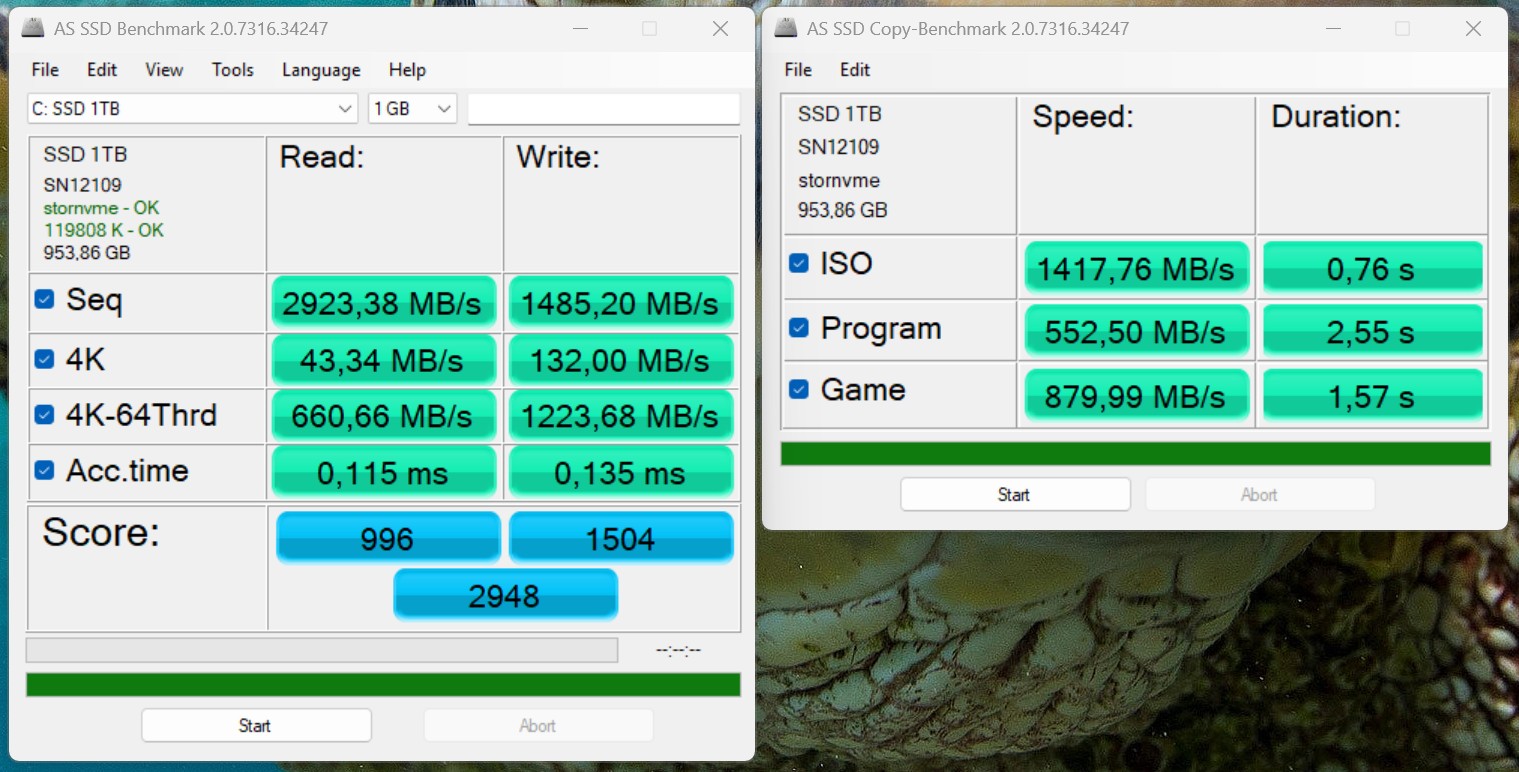 | Connectivity - USB 3.x / USB4 / TB - AS SSD Seq Read Test (1GB) | |