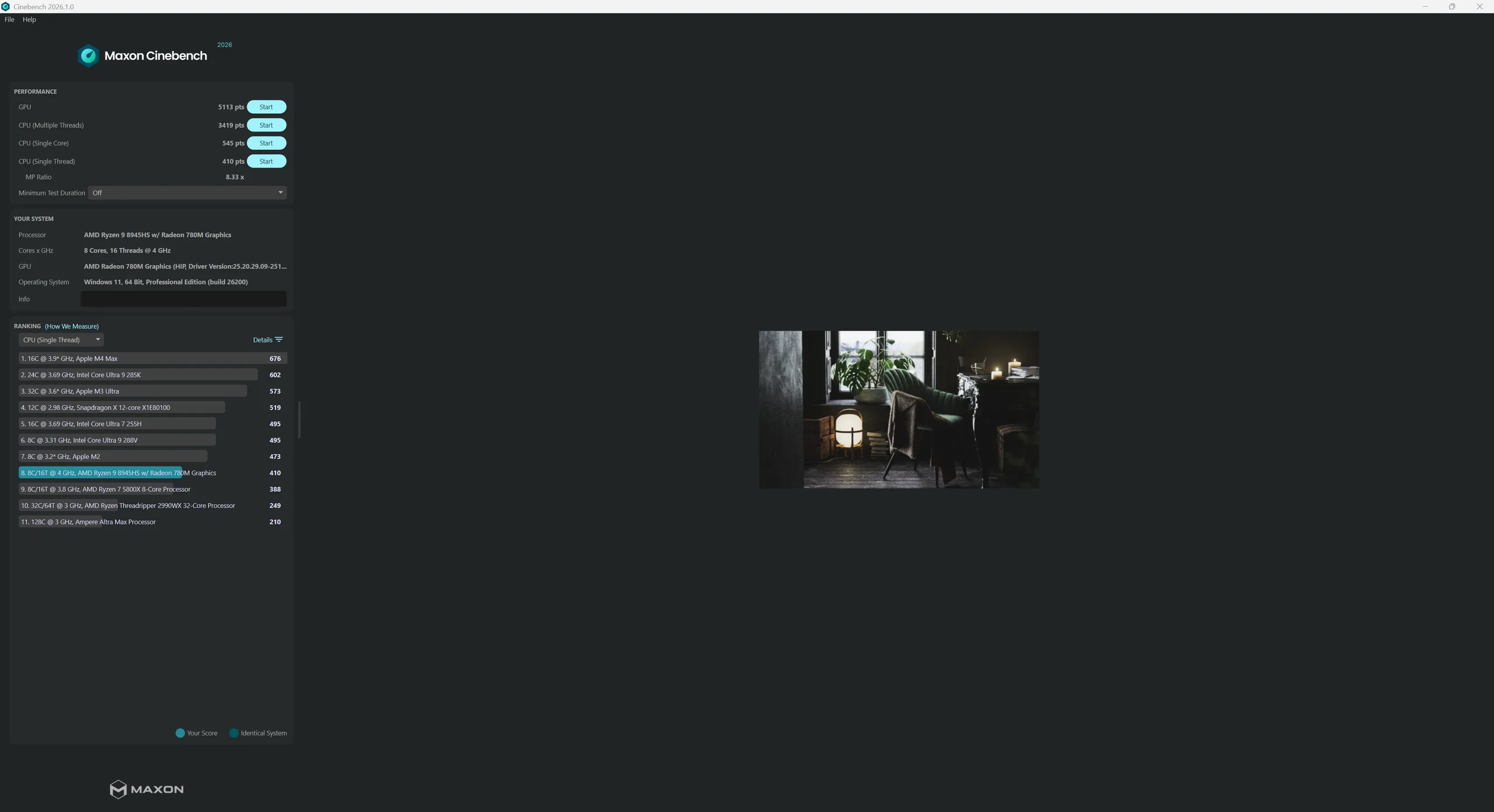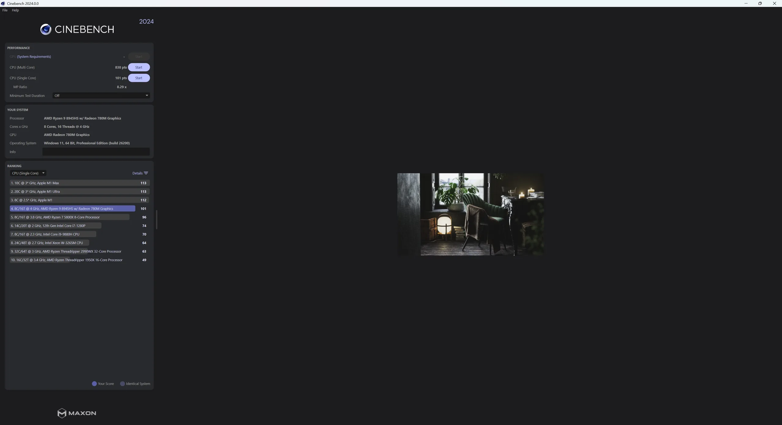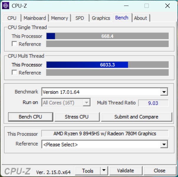 O Alliwava GH8 com AMD Ryzen 9 8945HS (Zen 4, 8 núcleos e 16 threads) oferece alta potência de computação em geral e está posicionado na potente faixa intermediária dos mini PCs atuais. O SoC pode atingir um consumo de energia de curto prazo de até 65 watts, mas se estabiliza em cerca de 55 watts sob carga contínua. Em uma comparação direta, no entanto, nossa amostra de teste perde para o Geekom A8, que está equipado com um AMD Ryzen 7 8745HS supostamente mais fraco.