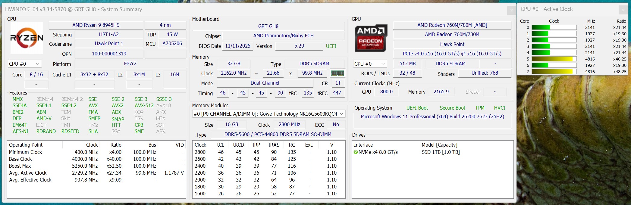 | Alliwava GH8, R9 8945HS AMD Ryzen 9 8945HS ⎘ AMD Radeon 780M ⎘ 32 GB Memória | Preço de tabela: 769€ | 516 g | 127 x 130 x 50 mm | |