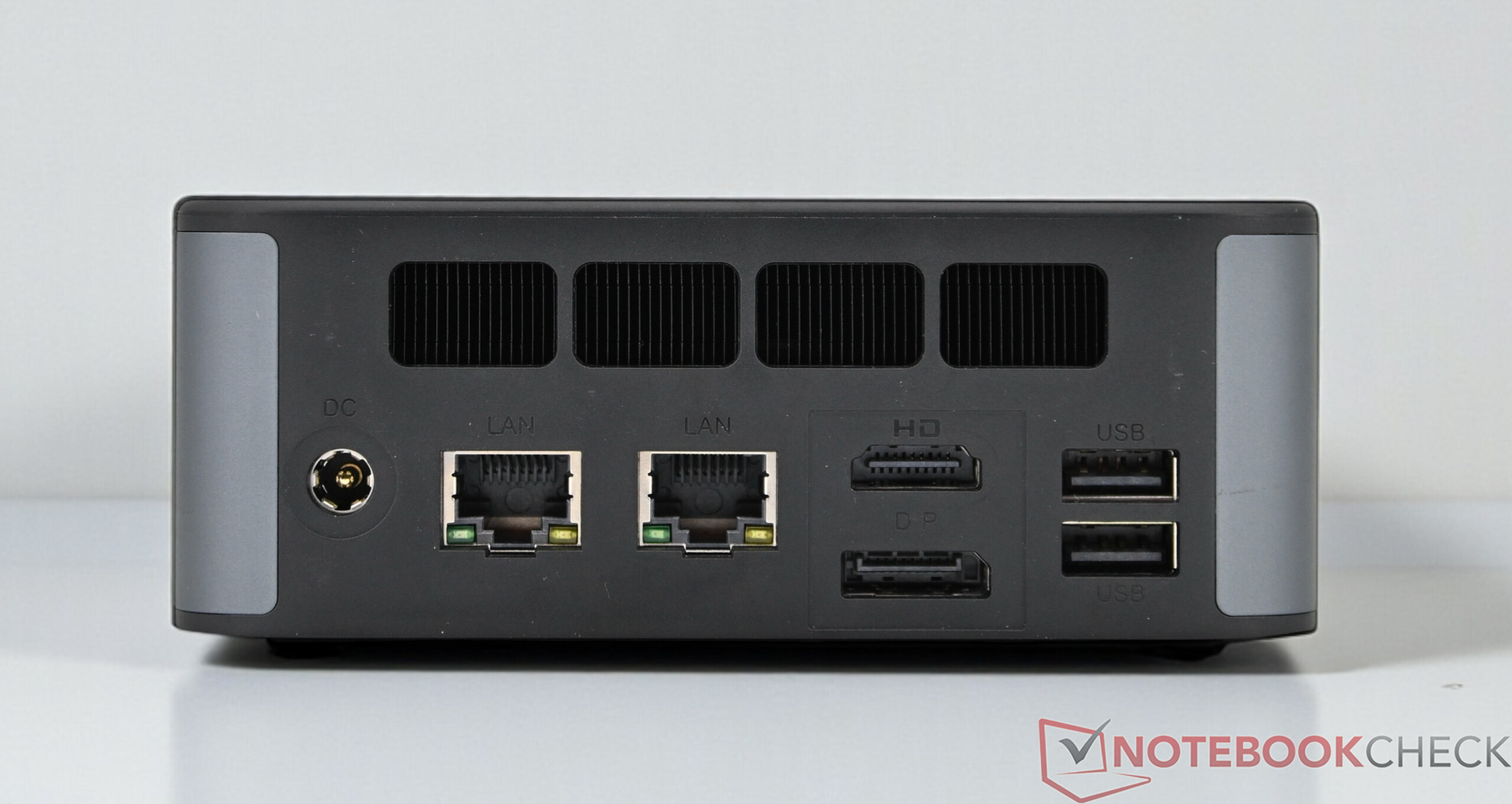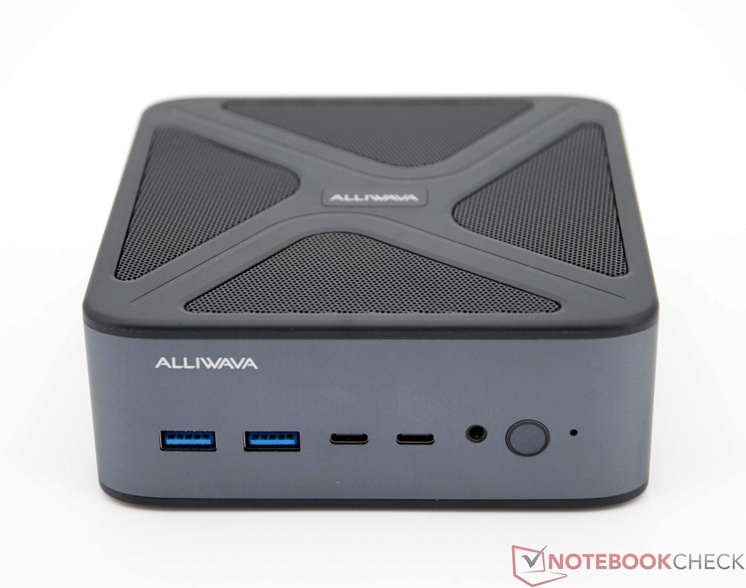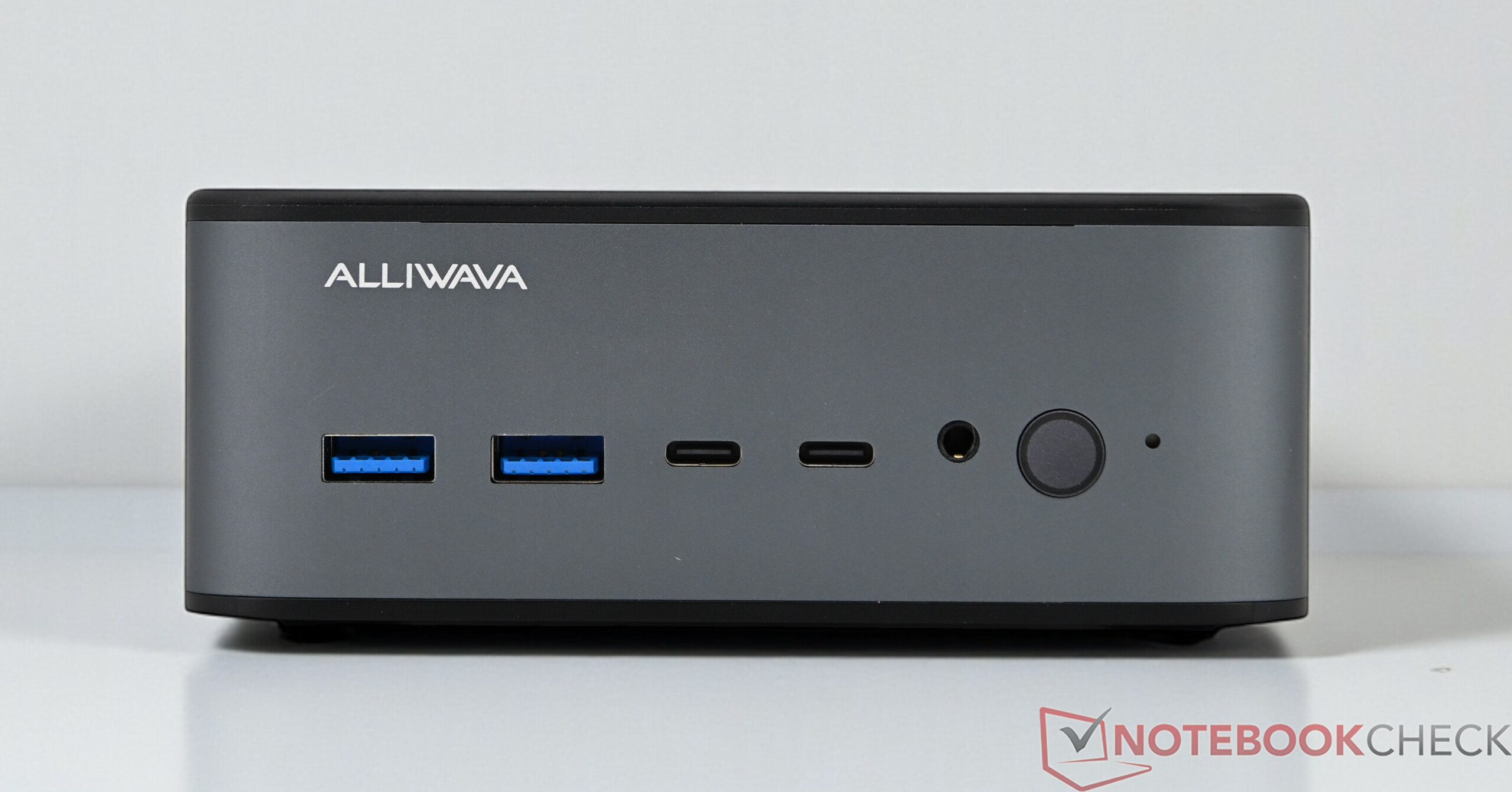 A Alliwava GH8 está alojada em uma caixa de alumínio resistente e se destaca por suas dimensões compactas e um peso de cerca de 500 gramas. Embora o corpo da caixa seja feito de metal, elementos de plástico são usados na tampa e na parte inferior, o que prejudica apenas um pouco a impressão geral de alta qualidade e robustez. A conectividade está praticamente distribuída na parte frontal e traseira e cobre de forma confiável os requisitos típicos de escritório e de casa. A interface USB4, que também suporta o uso de placas gráficas externas, merece menção especial. O sólido equipamento básico também inclui duas portas Gigabit Ethernet 2,5 e WLAN, o que significa que o Alliwava GH8 também está bem posicionado em termos de conectividade.