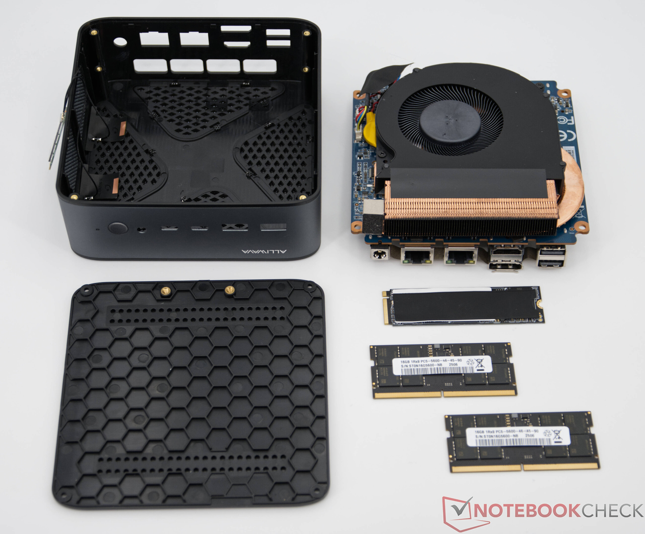 O Alliwava GH8 é fornecido de fábrica com a RAM e um SSD instalados e, portanto, está pronto para uso imediato. O gabinete pode ser facilmente aberto para atualizações subsequentes, com a RAM, o armazenamento em massa e o módulo WLAN sendo facilmente acessíveis e substituíveis.