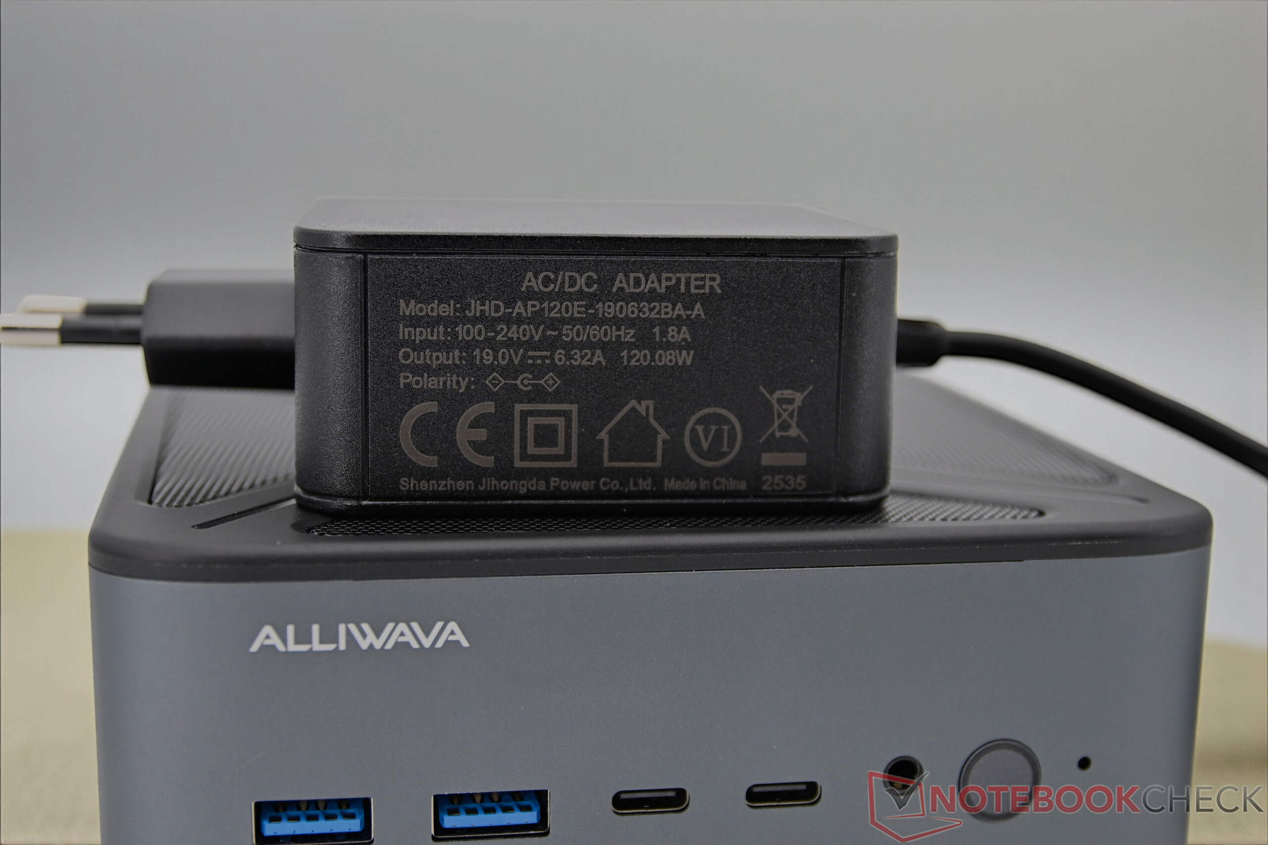 Em nossa análise, o Alliwava GH8 demonstra ser um minicomputador comparativamente eficiente em termos de energia. No modo inativo, o consumo de energia é de 6,5 a 10,7 watts, enquanto cerca de 60 watts são medidos sob carga típica. Os picos de carga de curto prazo de cerca de 82 watts não são problema para a fonte de alimentação de 120 watts.
