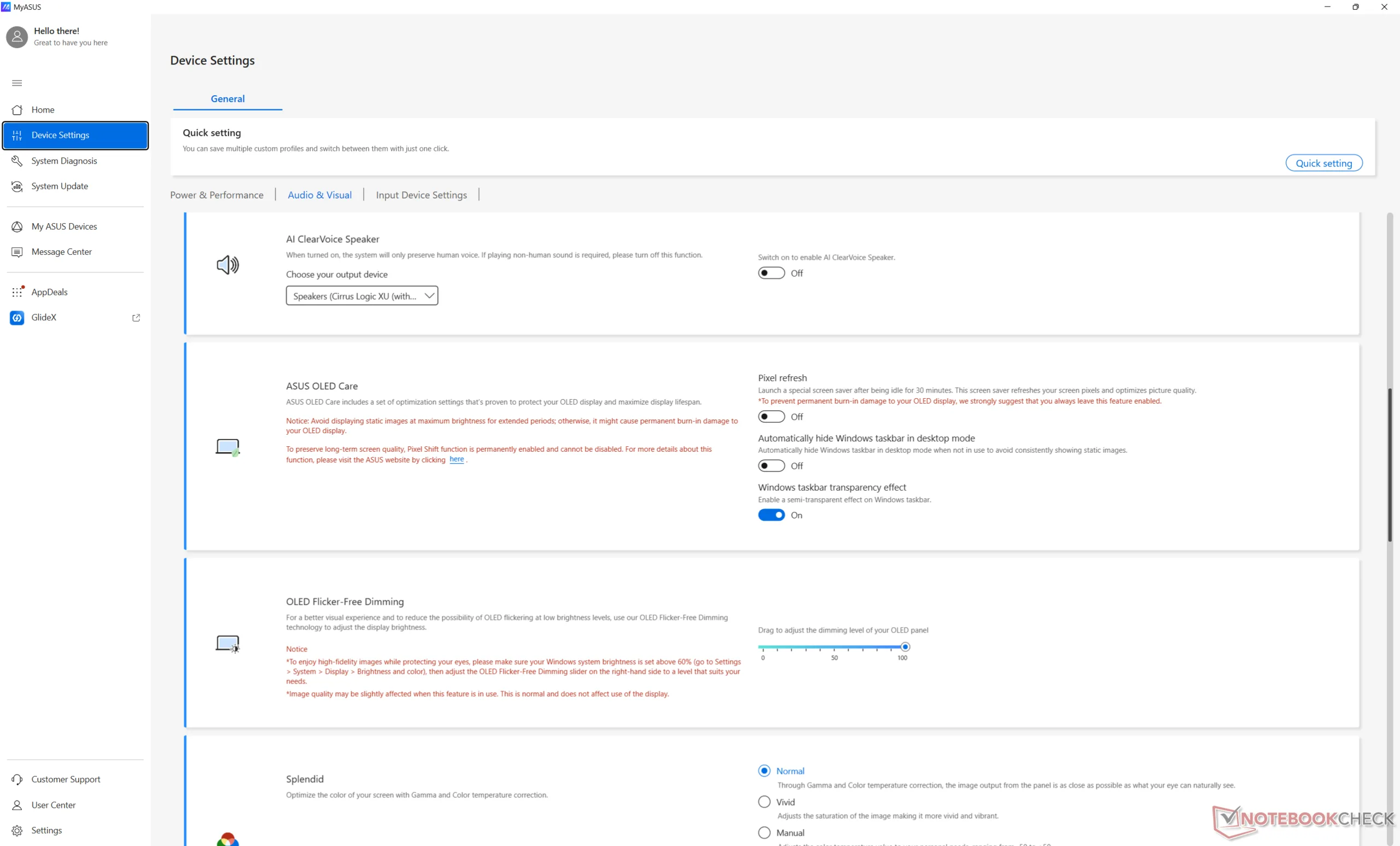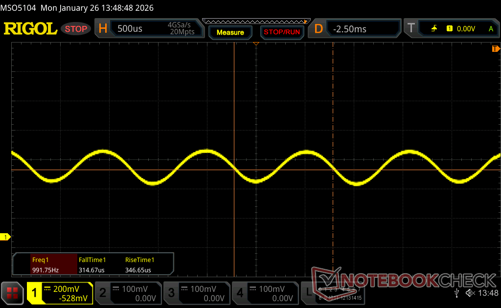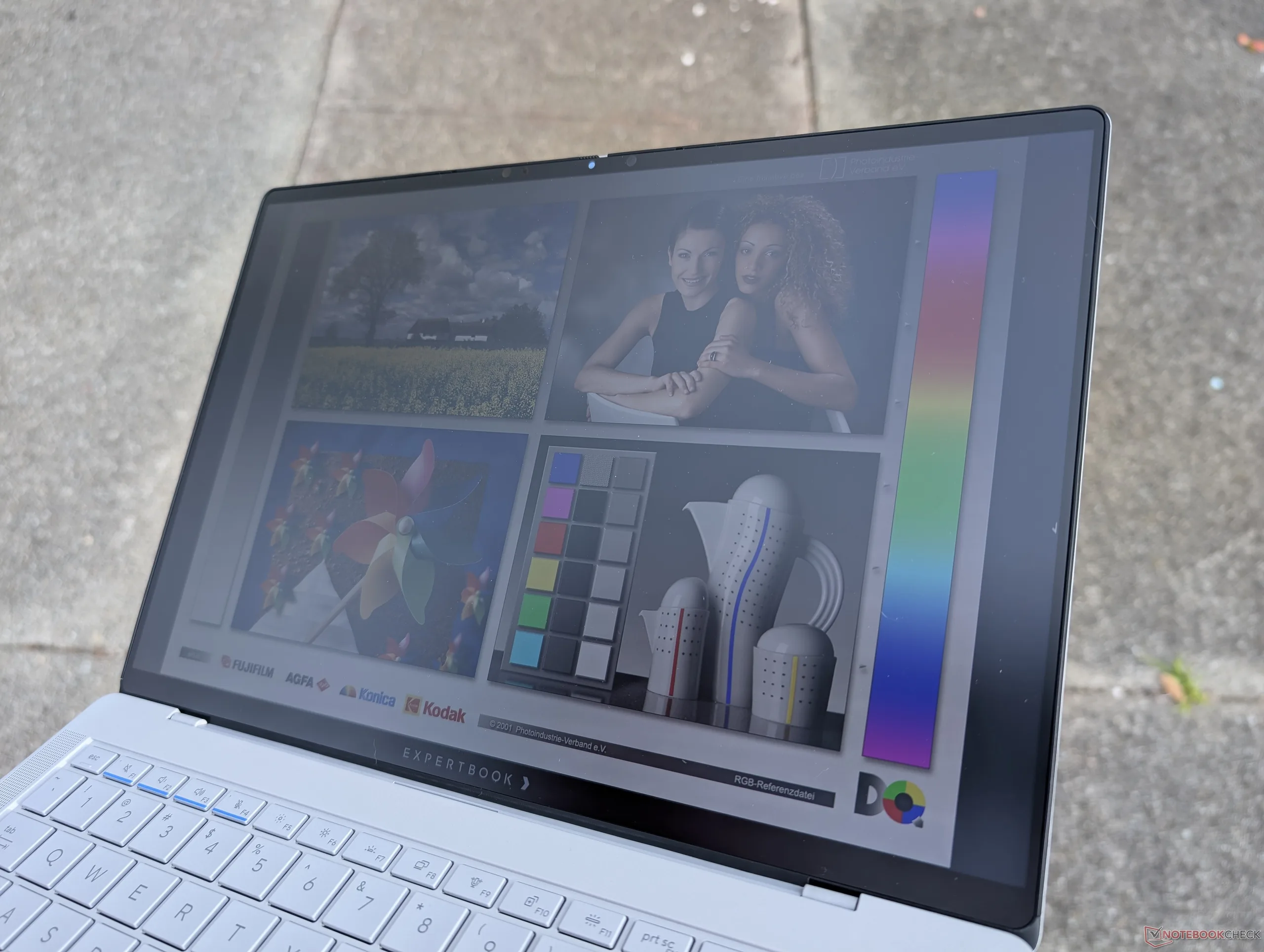 Uma das principais vantagens do OLED tandem são seus níveis de brilho muito mais altos em comparação com o OLED padrão. De fato, conseguimos medir um brilho máximo de 1403 nits no modo HDR, enquanto as telas OLED da maioria dos outros notebooks atingem apenas a metade ou menos. Níveis de brilho mais altos, acompanhados de níveis profundos de preto pelos quais o OLED é conhecido, levam a um conteúdo HDR ainda mais vibrante no ExpertBook Ultra. O brilho máximo é limitado a 600 nits no modo SDR padrão.