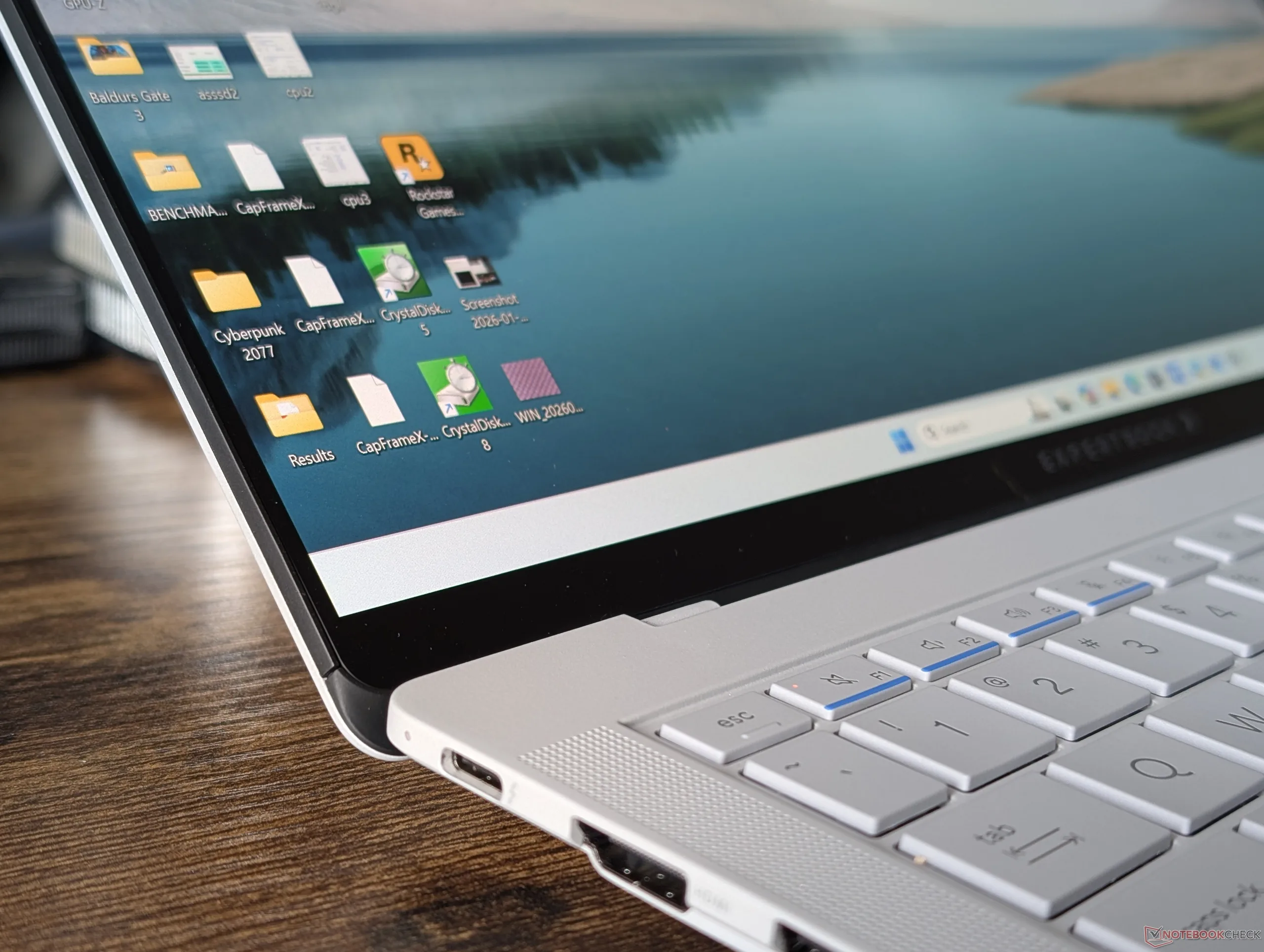 Quanto ao laptop em si, o clickpad háptico pode ser excessivamente sensível, enquanto o OLED fosco é visivelmente mais granulado do que os painéis brilhantes mais comuns. Alguns usuários corporativos podem, no entanto, ignorar essas deficiências devido à portabilidade impressionante e ao potencial de desempenho do sistema como um todo.