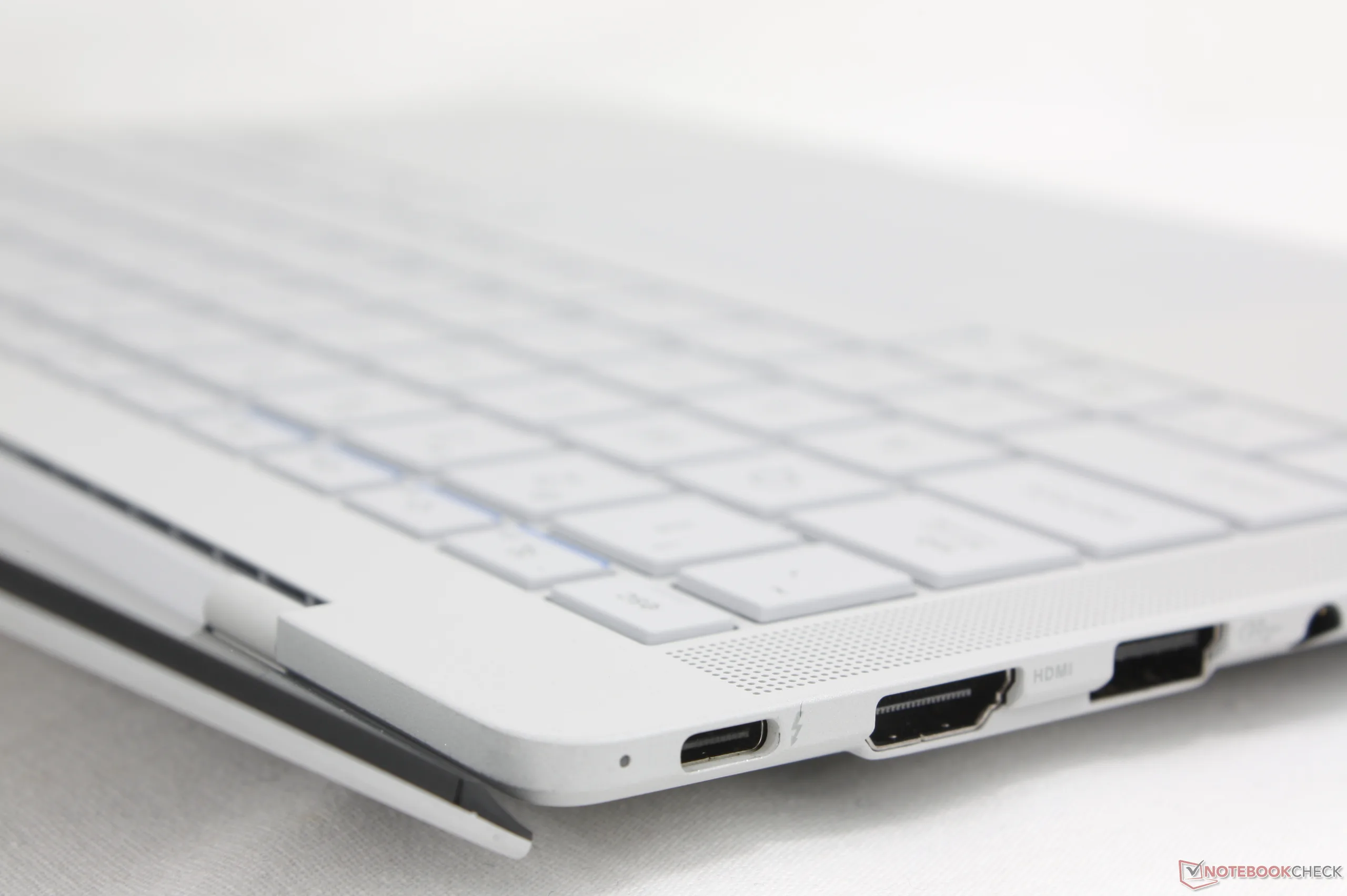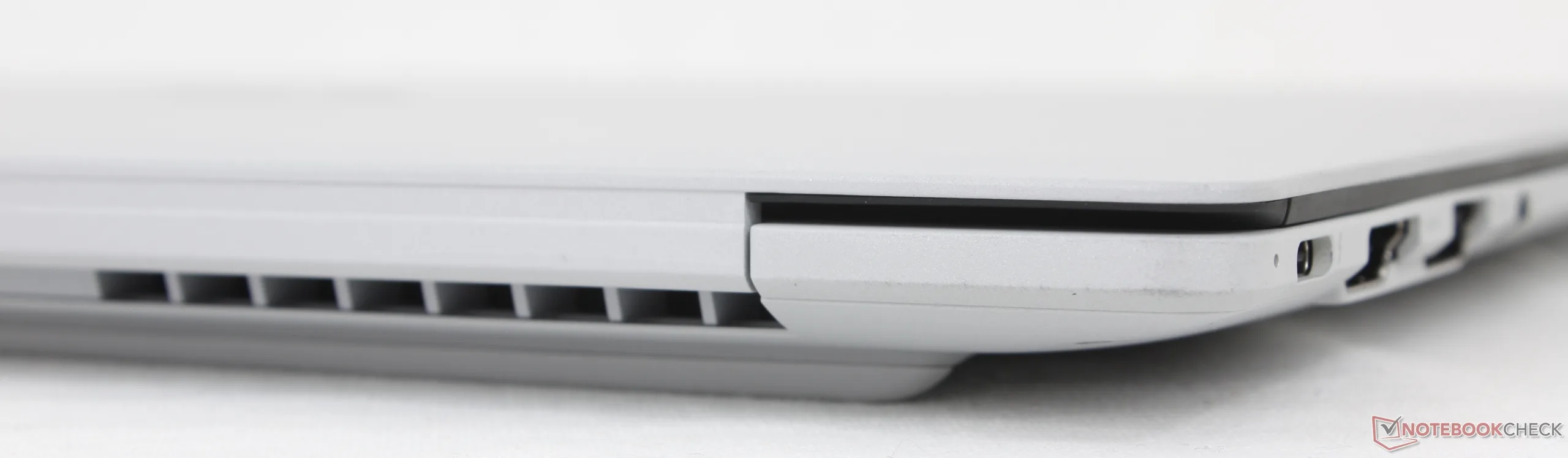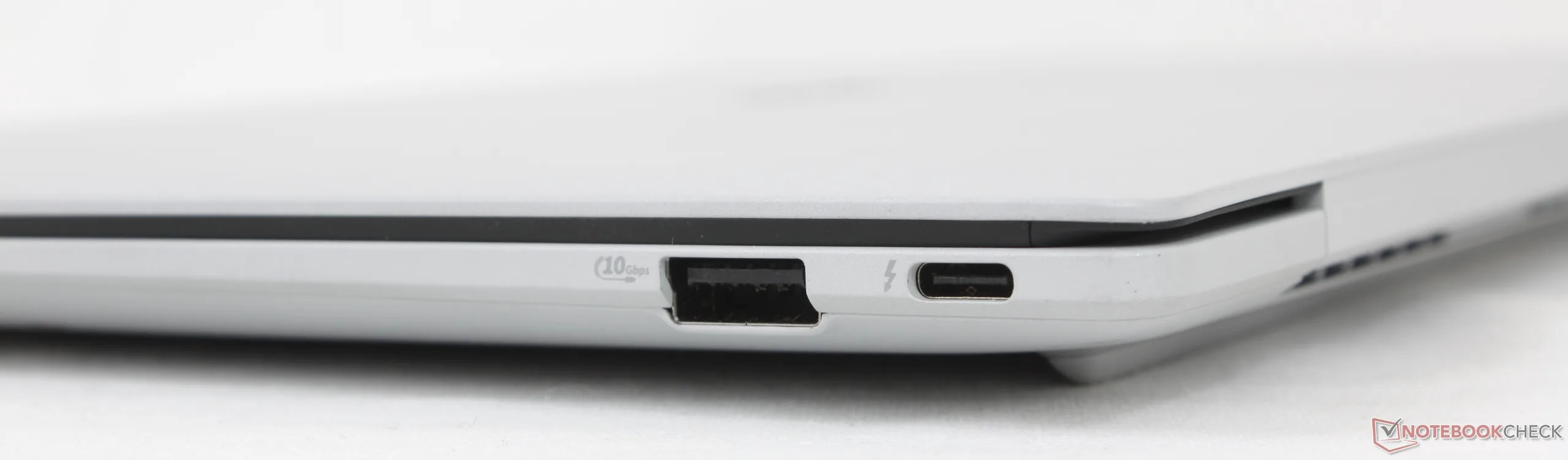 As opções de portas são comparáveis às do ThinkPad T14s Gen 6 embora sem opções de Smart Card. No Asus, no entanto, apreciamos o fato de as duas portas USB-C estarem divididas entre as bordas direita e esquerda do sistema para facilitar o carregamento. Em comparação, as mesmas duas portas USB-C no ThinkPad mencionado acima estão apenas na borda esquerda.