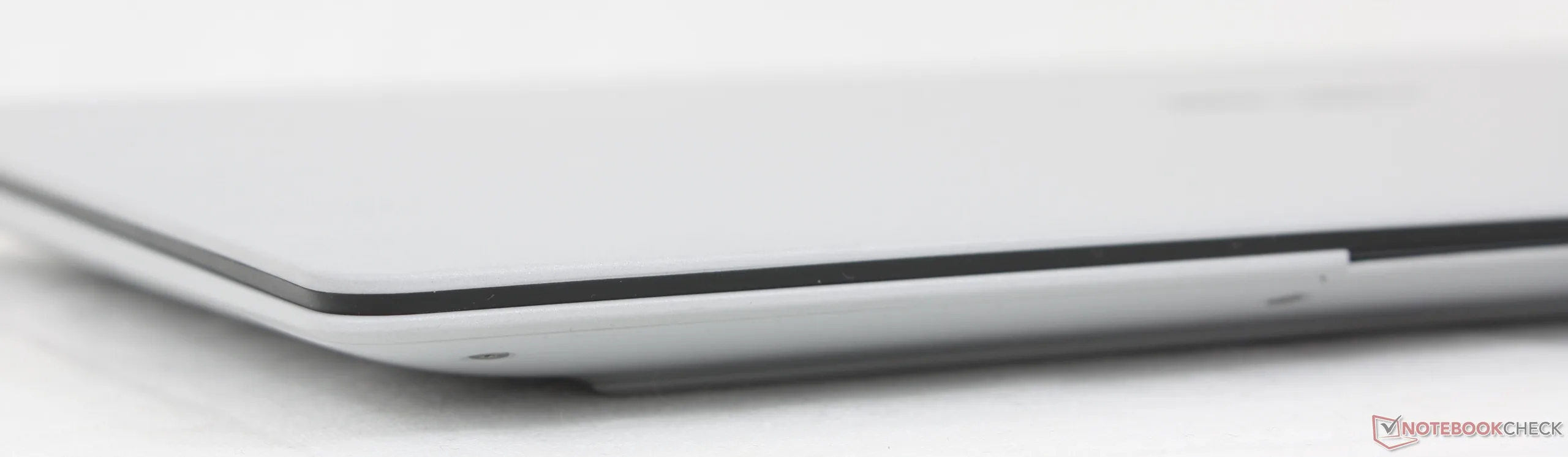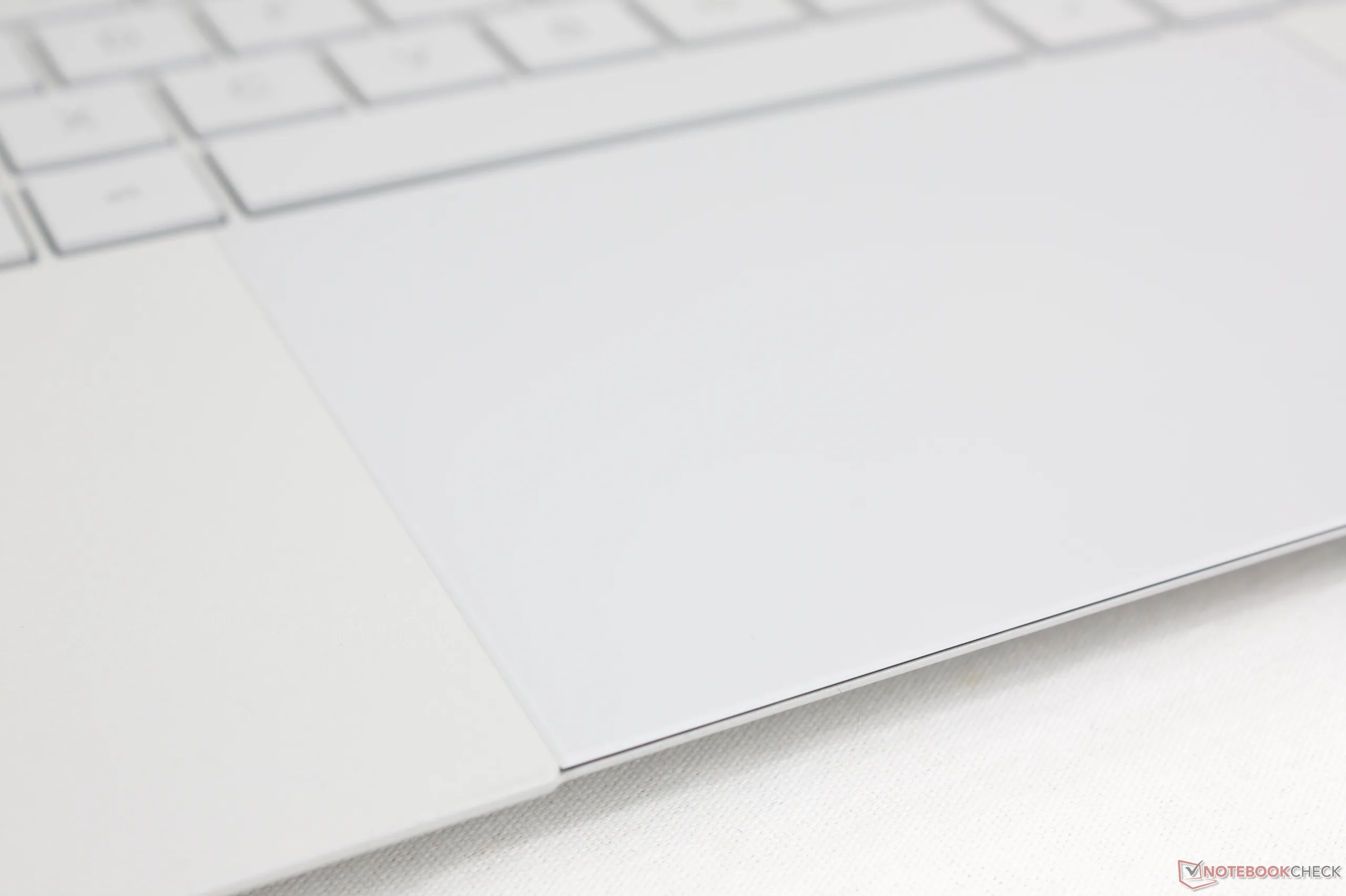 Embora o clickpad seja razoavelmente grande, com 12,8 x 8,8 cm, o feedback háptico ao clicar é muito fraco, o que causa uma sensação insatisfatória. Além disso, a borda frontal do clickpad fica totalmente alinhada com a borda frontal do chassi, ao contrário da maioria dos outros notebooks, o que significa que cliques ou movimentos acidentais são mais comuns em nossa experiência.