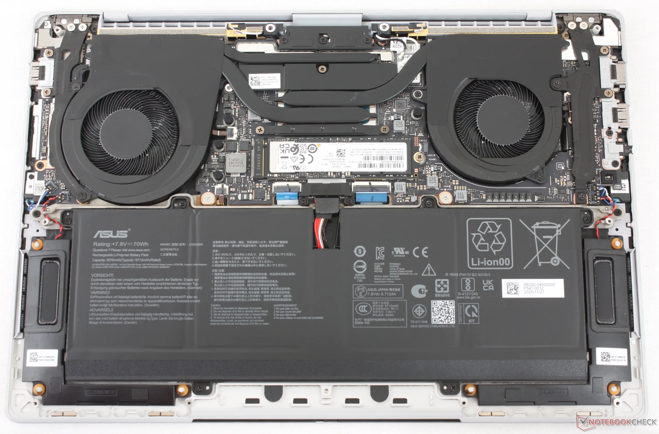 Embora a capacidade de 70 Wh seja comum para a classe de tamanho de 14 polegadas, a duração da bateria é tudo menos isso. O Asus pode durar pouco mais de 16 horas de navegação WLAN no mundo real antes do desligamento automático, o que é várias horas a mais do que muitos outros subnotebooks, incluindo o próprio ExpertBook PM3406.