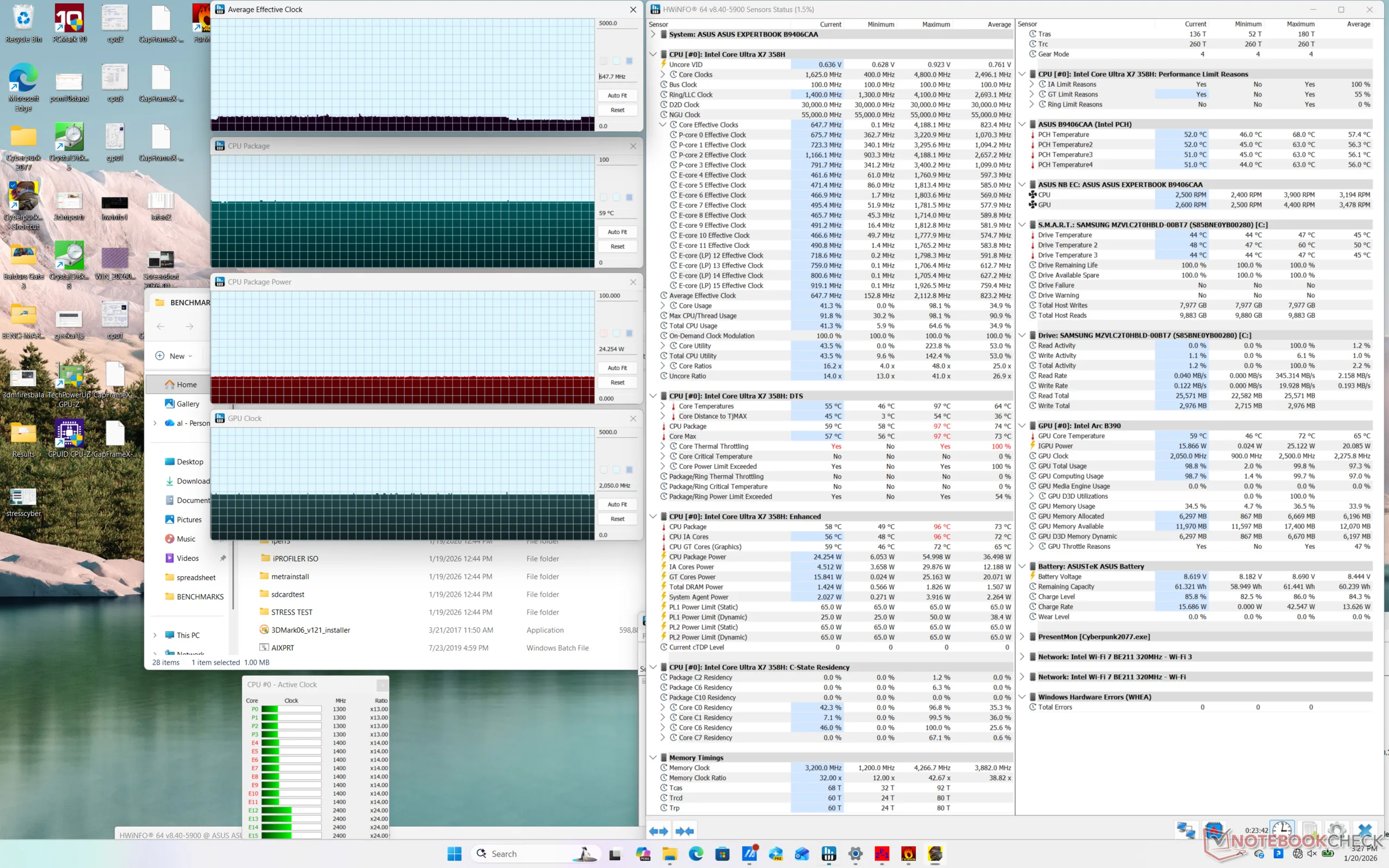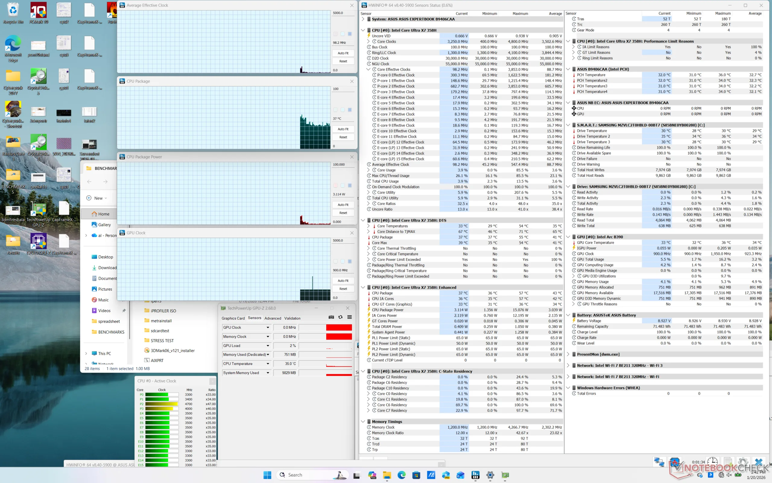 | Asus ExpertBook Ultra B9406CAA Ultra X7 358H, Arc B390 Panther Lake iGPU | Dell Pro 14 Plus PB14255 GH77W Ryzen AI 7 PRO 350, Radeon 860M | Asus ExpertBook PM3406 Ryzen AI 7 350, Radeon 860M | Lenovo ThinkPad T14s Gen 6 Intel Core Ultra 5 228V, Arc 130V | Samsung Galaxy Book5 Pro 14 940XHA Core Ultra 5 226V, Arc 130V | HP EliteBook Ultra G1i 14 Core Ultra 7 258V, Arc 140V | |