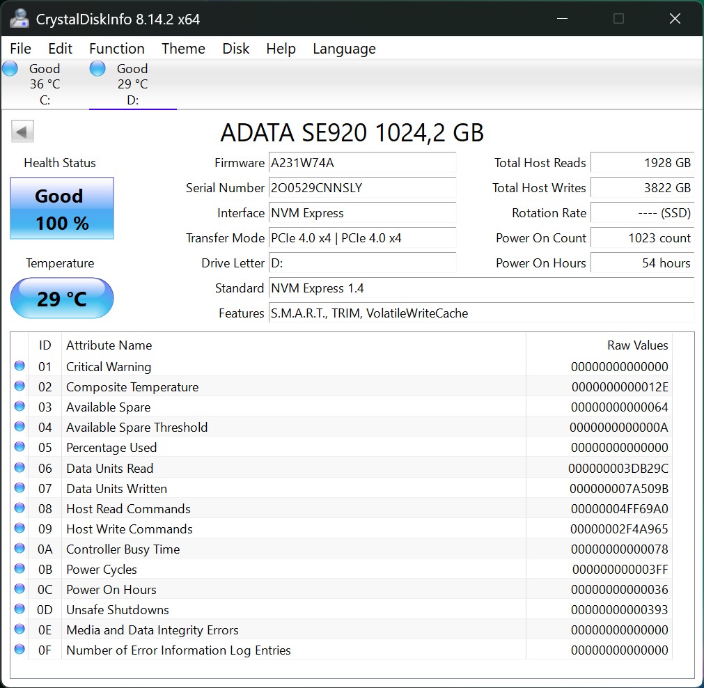 Desempenho do Thunderbolt 4 (ADATA SE920)