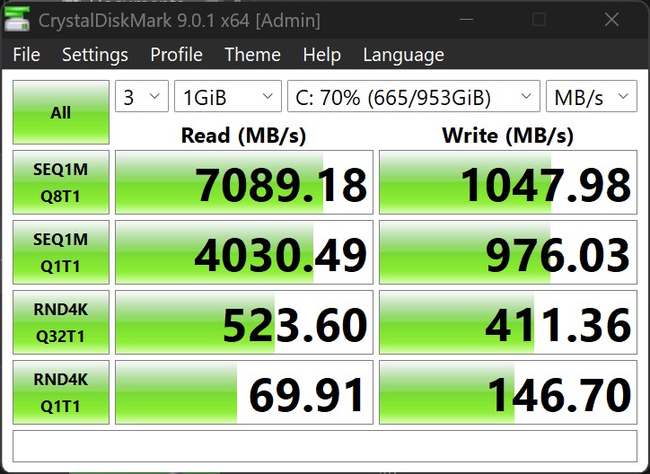 | Connectivity - USB 3.x / USB4 / TB - AS SSD Seq Read Test (1GB) | |