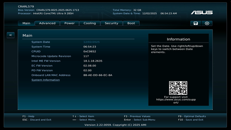 Todos os benchmarks foram realizados com as configurações de fábrica. O desempenho do SoC permaneceu inalterado e correspondeu às configurações de fábrica do BIOS no modo balanceado. As amplas opções da BIOS são uma característica positiva. Em comparação com os mini PCs da Geekom, Minisforum ou Acemagic, a Asus oferece significativamente mais opções de intervenção aqui - incluindo a desativação direcionada de portas USB individuais.