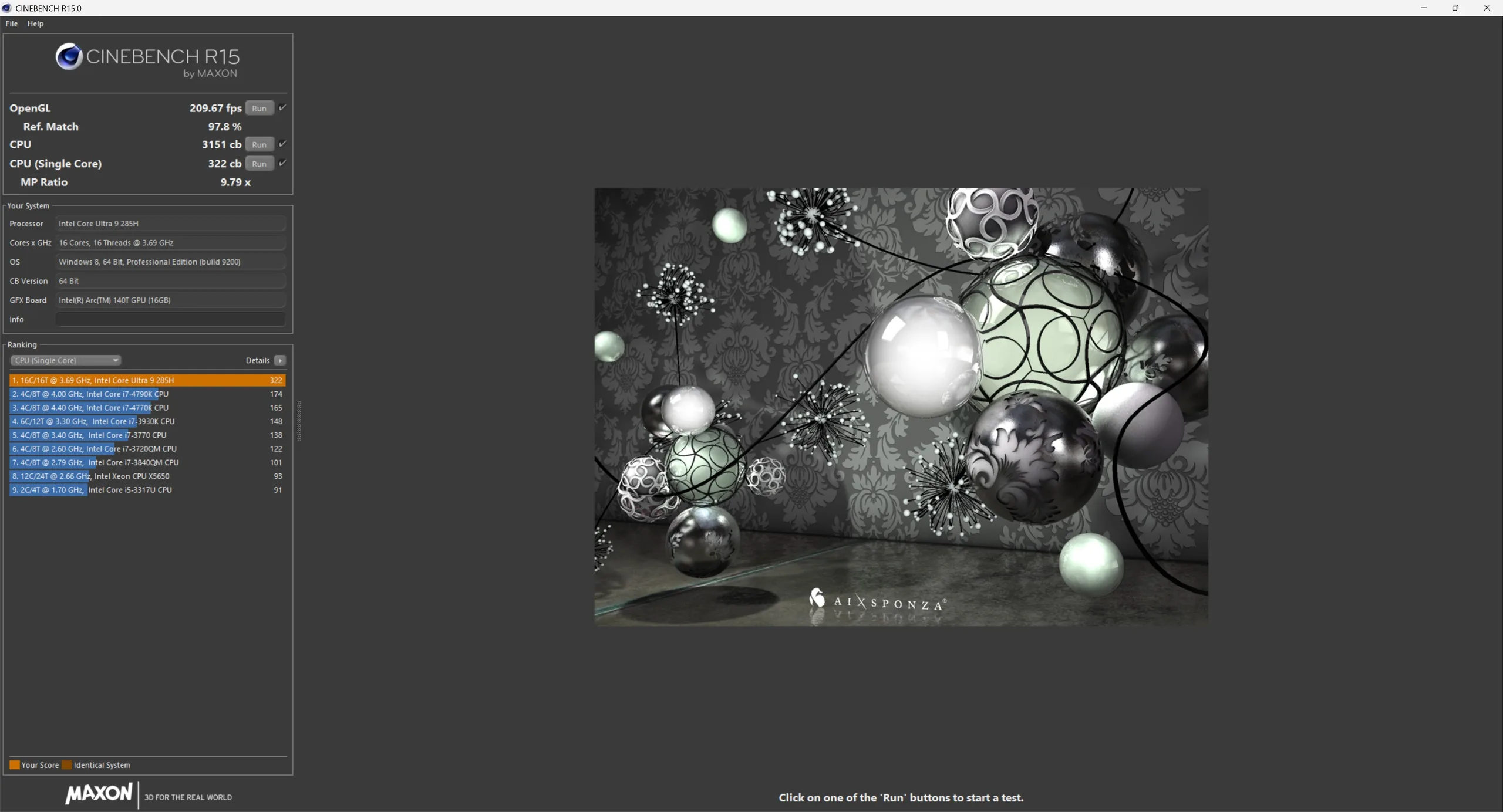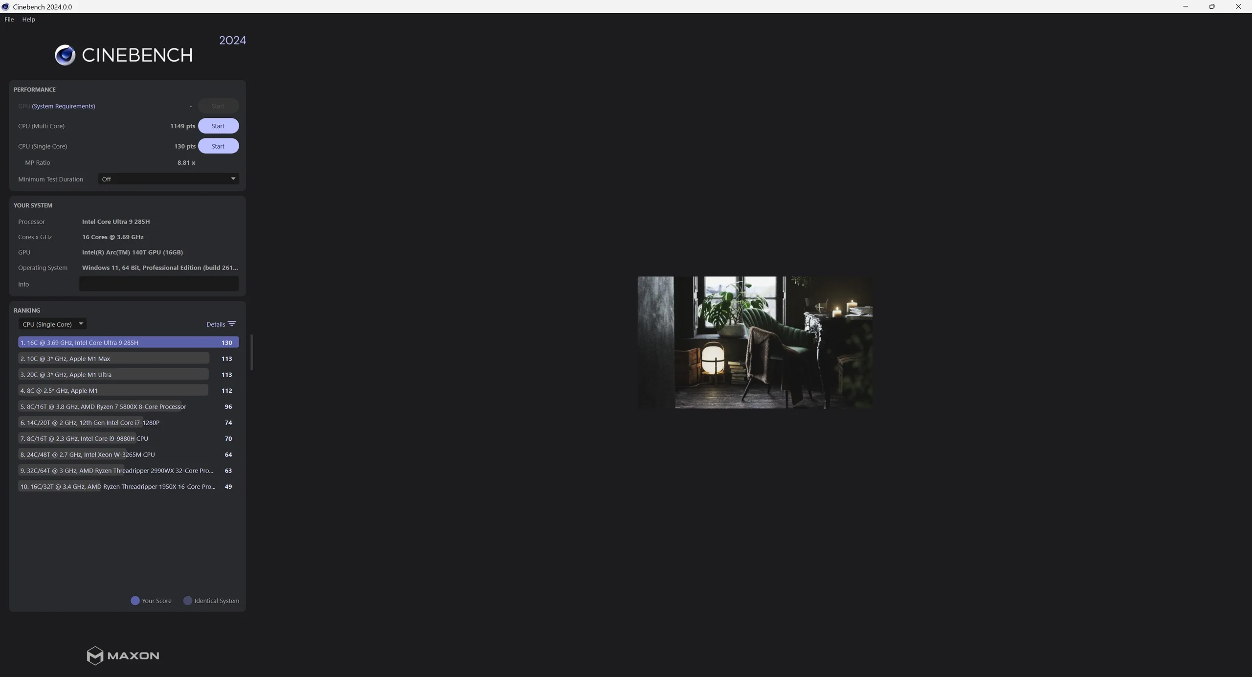 O excelente desempenho dos benchmarks de CPU também é evidente nos benchmarks de desempenho do sistema. A rápida RAM DDR5 com 6.400 MT/s, em particular, contribui para os excelentes resultados e deixa os dispositivos de comparação para trás. A NPU integrada do Intel Core Ultra 9 285H processa tarefas de IA de forma particularmente eficiente e se beneficia dos lançamentos de alto desempenho do processador.