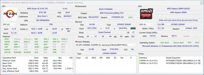 As ventoinhas relativamente barulhentas sob carga, bem como a RAM soldada, continuam sendo pontos fracos. Além disso, o slot de SSD secundário só é conectado via PCIe 4.0 x2, o que limita o desempenho, e a duração da bateria também é um pouco mais fraca.