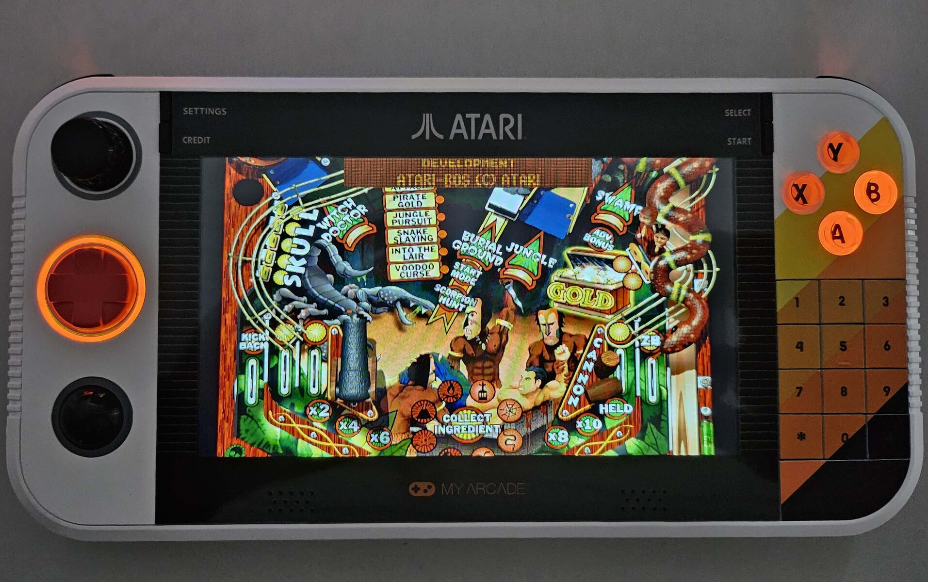 Cada jogo oferece várias configurações de controle que podem ser visualizadas e ajustadas a qualquer momento durante o jogo. Um recurso de iluminação chamado SmartGlow, desenvolvido pela Atari e pela My Arcade, destaca em cores quais controles estão ativos no momento e são necessários para o jogo selecionado. A tela de 7 polegadas (cerca de 18 cm) é grande o suficiente para jogos retrô, embora muitos títulos mais antigos não façam uso total da tela. As configurações permitem que o usuário mantenha a proporção original ou estique a imagem para preencher a tela, embora a última opção naturalmente introduza distorção.