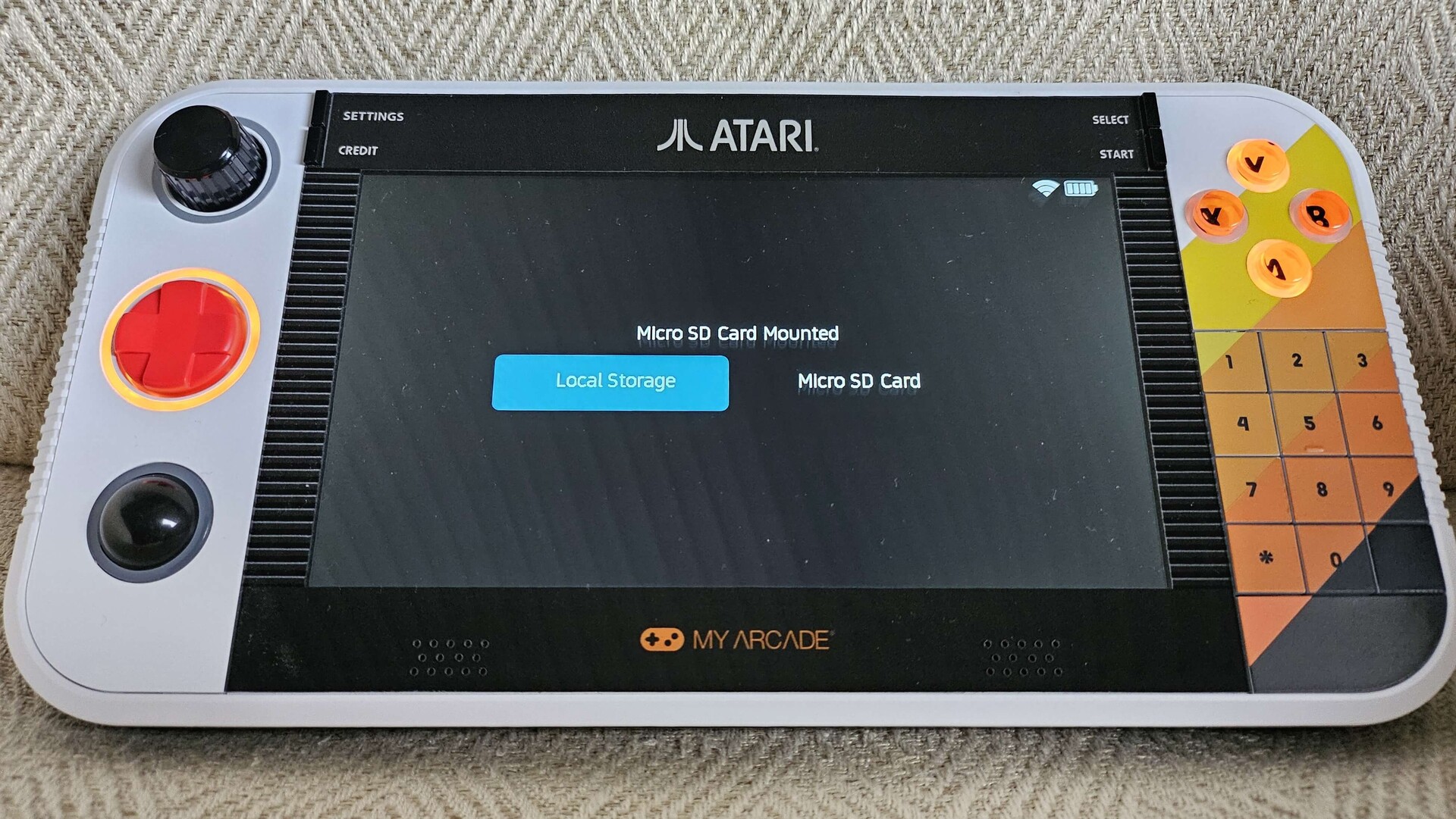 O que a My Arcade e a Atari ocultaram até agora foi a função adicional do slot micro SD, que oficialmente deve ser usado para atualizações se o usuário não tiver WLAN. Na verdade, ele pode ser usado para jogos adicionais para os emuladores incluídos, mas o cartão SD deve ser formatado corretamente. Como as ROMs retrô são uma área cinzenta e, em muitos casos, não são legais, é compreensível que essa função não seja amplamente divulgada, mas os fãs devem estar satisfeitos. E, considerando toda a concorrência da China, essa etapa é, de certa forma, necessária para manter o computador de mão vivo. Afinal de contas, os jogos pré-instalados não são mais tão interessantes quanto eram no início. No entanto, é claro que isso não é um convite para expandir a biblioteca de jogos se o senhor não tiver os módulos originais em casa e já os tiver lido.