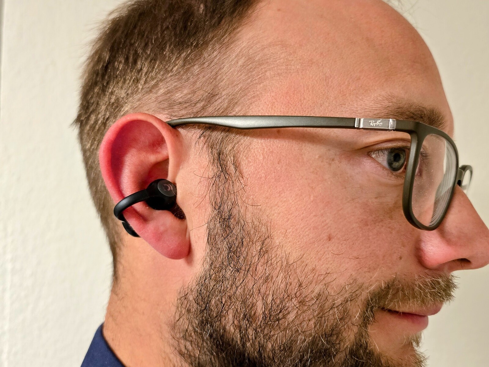 No uso diário, o ajuste é impressionante. Os Inspire XC1 são muito leves, e o testador rapidamente se esqueceu de que estavam sendo usados. Mesmo durante as rotinas de ciclismo ou de exercícios, os fones de ouvido permanecem seguros e não escorregam. Com uma classificação IP66, eles também são adequados para a prática de esportes.