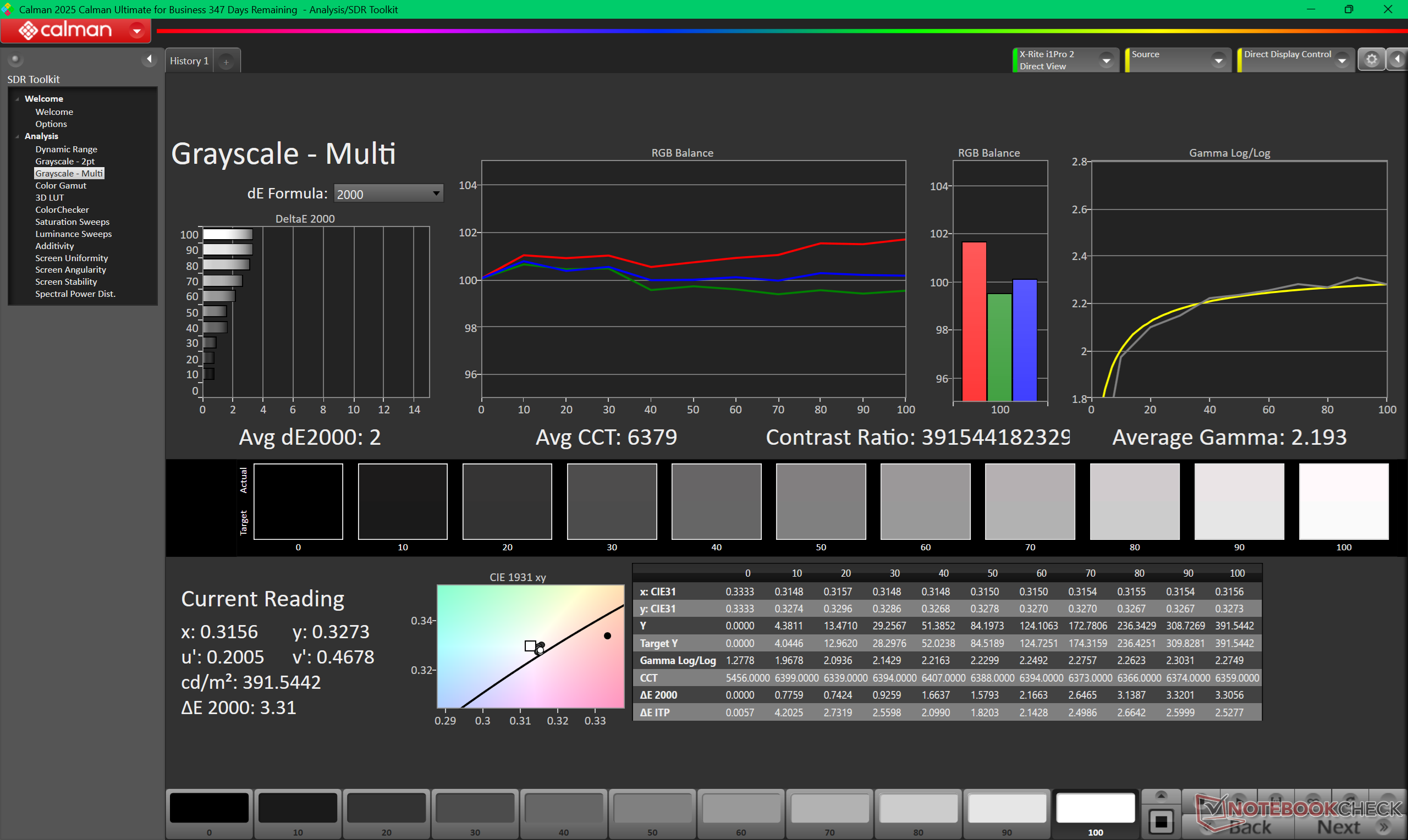 ΔE Greyscale Calman: 2 | ∀{0.09-98 Ø5}