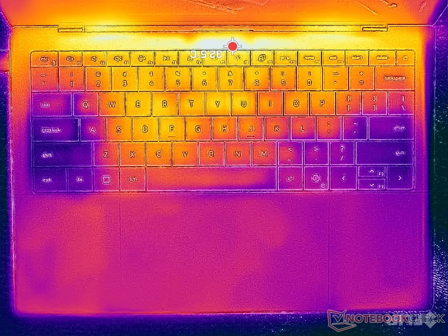 (+) Os apoios para as mãos e o touchpad são mais frios que a temperatura da pele, com um máximo de 31.2 °C / 88.2 F e, portanto, são frios ao toque.
