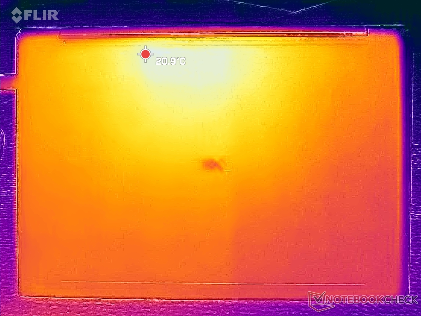 (+) A temperatura máxima no lado superior é 34 °C / 93 F, em comparação com a média de 36.9 °C / 98 F , variando de 21.1 a 71 °C para a classe Multimedia.