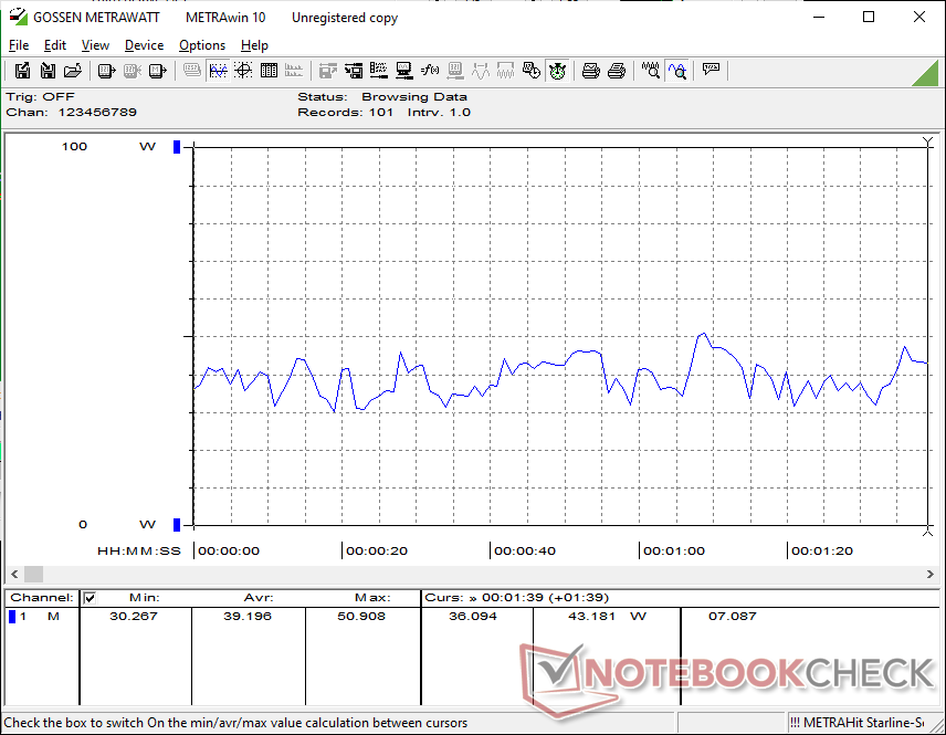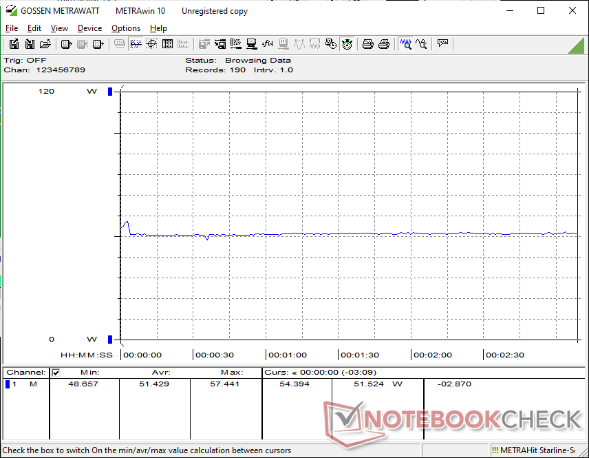 O tempo de execução da WLAN dura quase 17 horas no modo balanceado, o que é muito próximo do que registramos no ExpertBook Ultra equipado de forma semelhante. No entanto, observe que o Windows VRR não é ativado automaticamente para uma taxa de atualização fixa padrão de 120 Hz; a ativação manual reduziria a taxa de atualização para apenas 20 Hz quando estático para tempos de execução potencialmente mais longos.