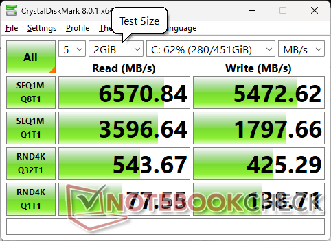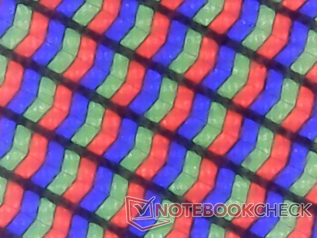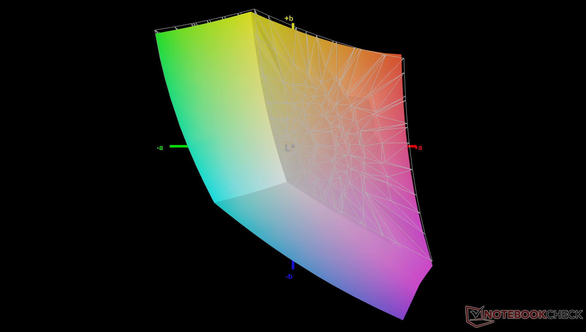 A tela básica oferece uma taxa de contraste muito alta de ~2000:1, especialmente para um painel IPS. A qualidade da imagem é surpreendentemente nítida para uma sobreposição fosca, enquanto as cores sRGB completas devem satisfazer a maioria dos usuários em geral ou criadores de conteúdo casuais. Cores P3 mais profundas, suporte a HDR ou funcionalidade de tela sensível ao toque estão disponíveis apenas na configuração OLED mais cara.