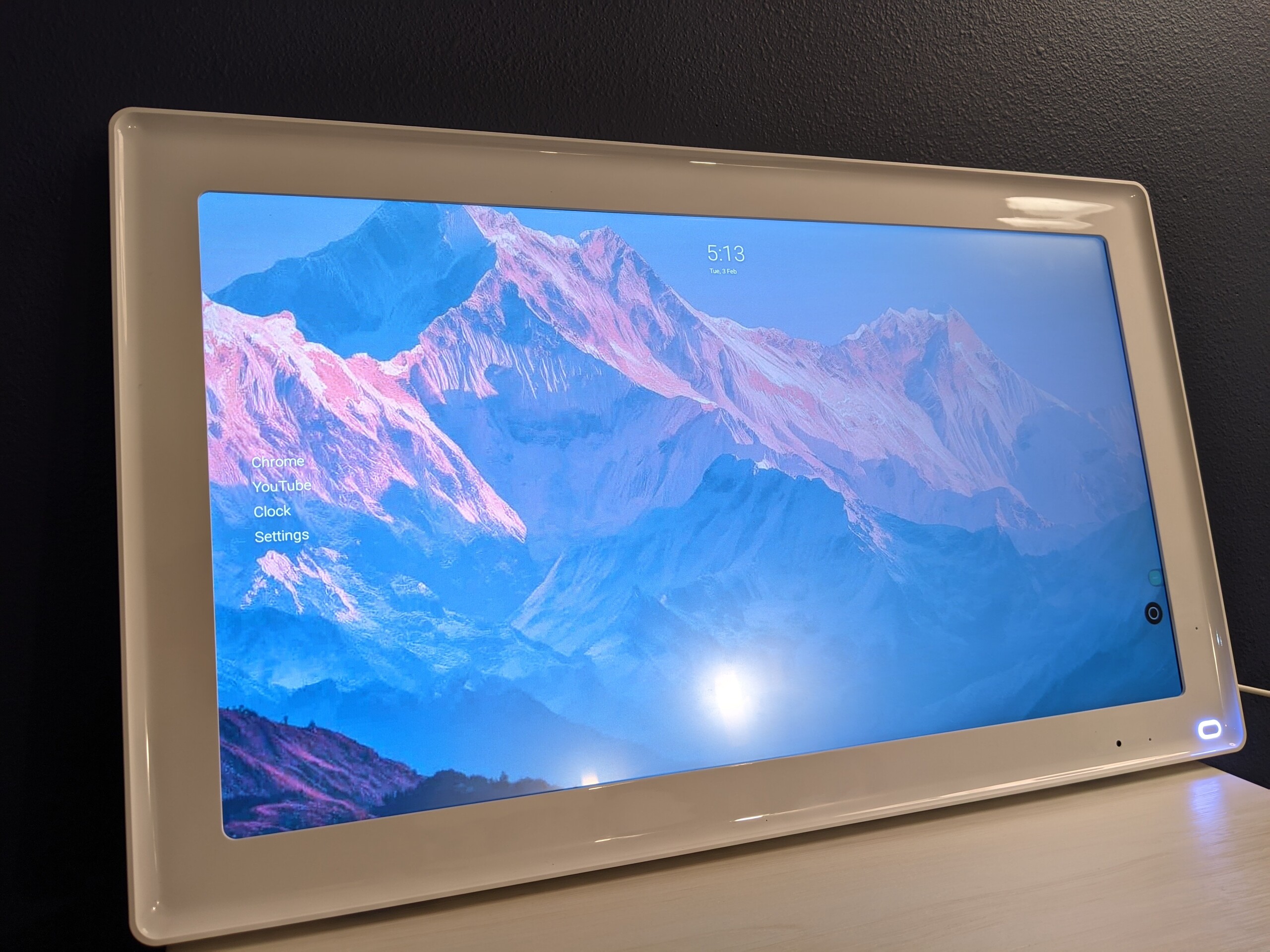 O E1 (21,5"), no entanto, parece muito mais robusto e pronto para um ambiente doméstico ou comercial. Sua escala é impressionante e ele encontra seu verdadeiro potencial em um ambiente de escritório dedicado, onde serve como um centro de organização abrangente. Entretanto, o adaptador CA incluído dificulta a montagem "limpa" na parede sem uma tomada diretamente atrás da unidade. Uma base alimentada por bateria para esse modelo maior teria aumentado significativamente sua utilidade.