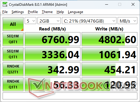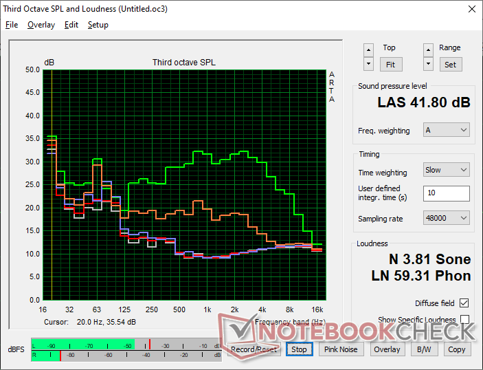 O painel é calibrado de forma apenas decente, com sua temperatura de cor excessivamente quente e valores médios de escala de cinza e cor deltaE relativamente baixos de 4,0 e 3,31, respectivamente. Embora não seja ruim para um laptop econômico, uma calibração para o usuário final pode ser mais difícil, pois o software da X-Rite não é compatível com máquinas ARM.