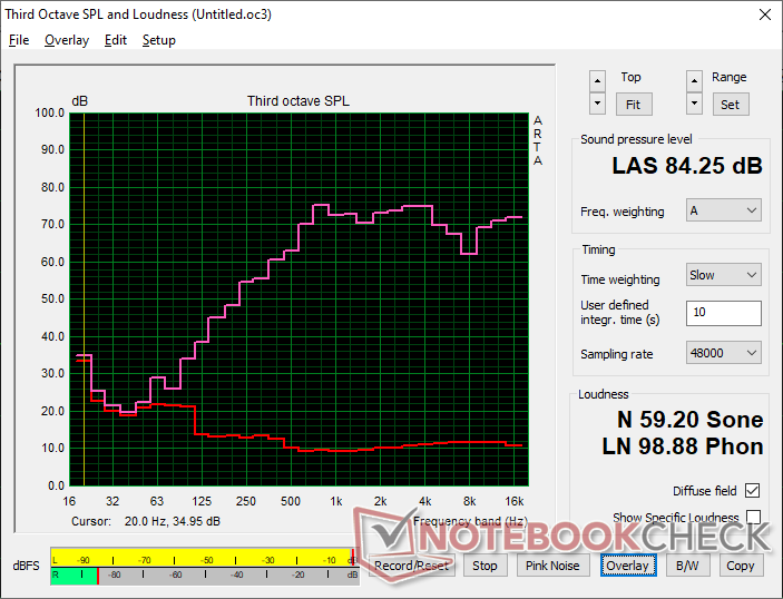 (±) | a linearidade dos graves é média (8.4% delta para a frequência anterior)
