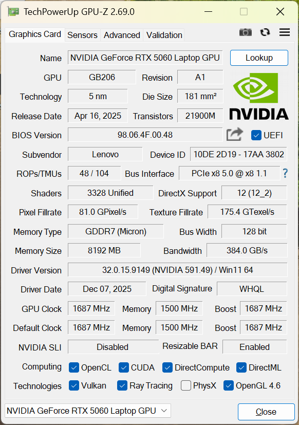 | Lenovo Pro 9 16IPH11 Intel Core Ultra 9 386H ⎘ NVIDIA GeForce RTX 5060 Laptop ⎘ 32 GB Memória, 1024 GB SSD | Amazon: Preço de tabela: 3100 USD | 1.9 kg | 17.3 mm | 16.00" 3200x2000 236 PPI Tandem OLED | |