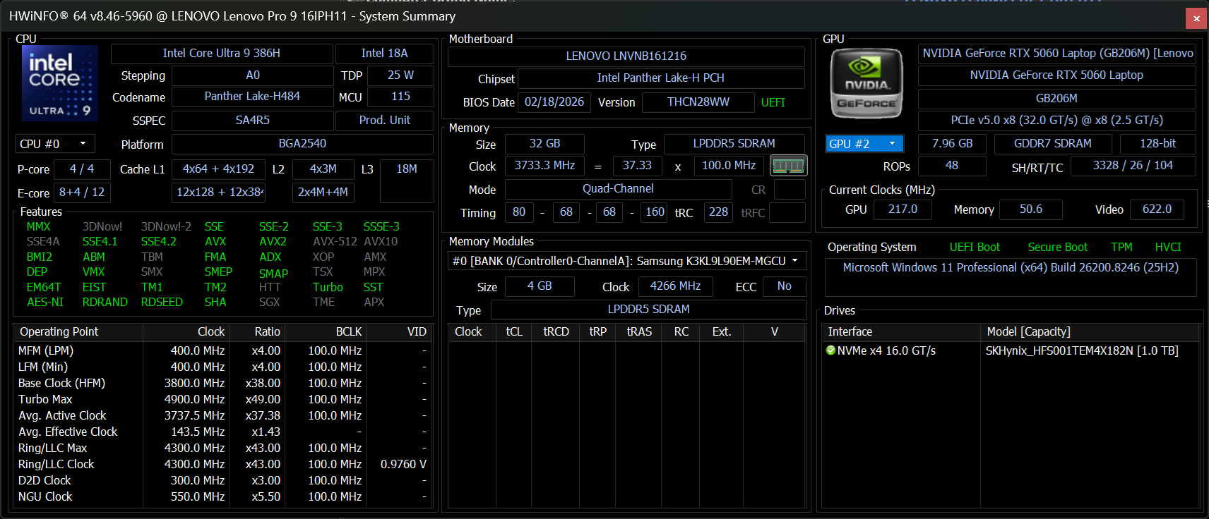 | Lenovo Yoga Pro 9 16IAH10 RTX 5050 (Angelbird AV Pro V60) | |
