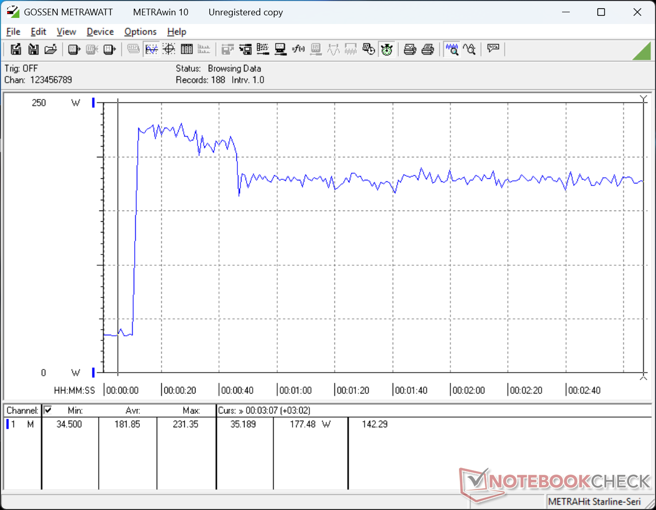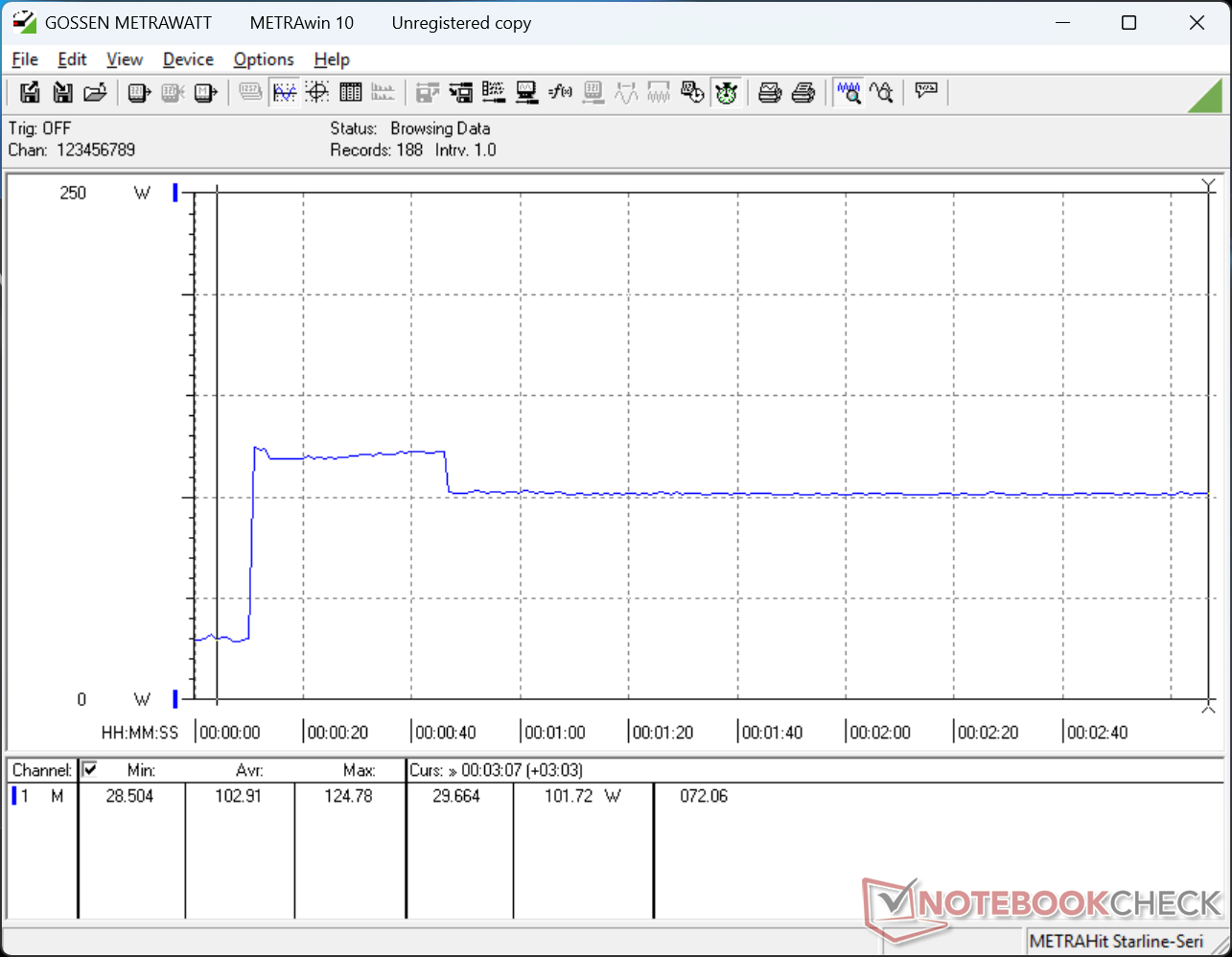 O sistema Lenovo é uma máquina muito exigente, com um mínimo alto de 15 W, mesmo quando está na configuração de brilho mais fraca com o Optimus ativo, até 46 W se estiver na configuração mais brilhante com a dGPU ativa. Ao executar cargas mais altas, como jogos, nossa unidade consumiria tanta energia quanto o Asus ProArt P16 equipado com a CPU Ryzen AI 9 HX 370 mais rápida e a GPU RTX 5070.