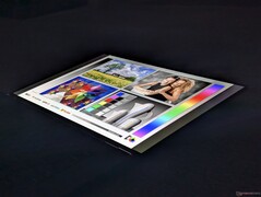 A tela OLED em tandem da nossa unidade é exatamente o mesmo painel Samsung ATNA60KA04-0 encontrado no 2025 Yoga Pro 9i 16 para a mesma experiência de visualização. Nossas próprias medições revelam um brilho central máximo de 931 nits no modo SDR e 1480 nits no modo HDR, o que faz dessa uma das telas mais brilhantes de qualquer laptop de 16 polegadas.