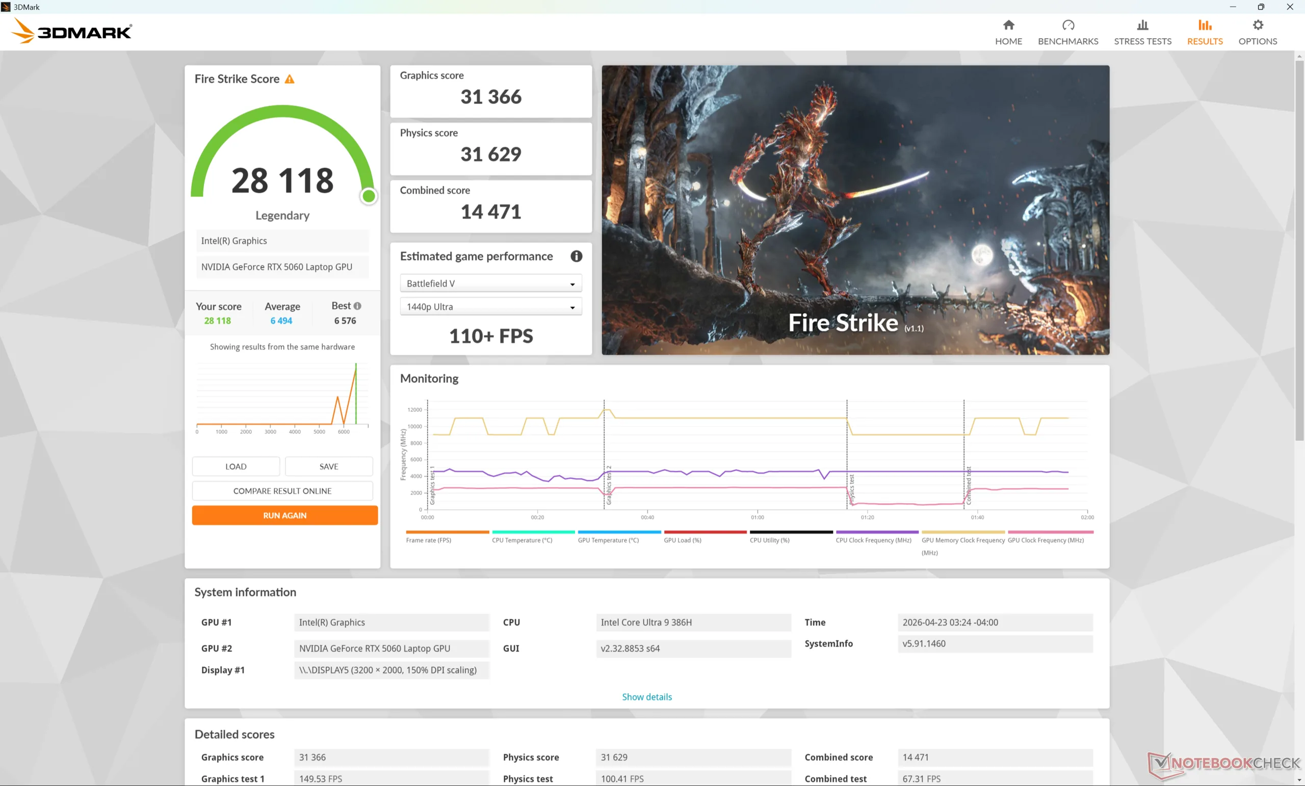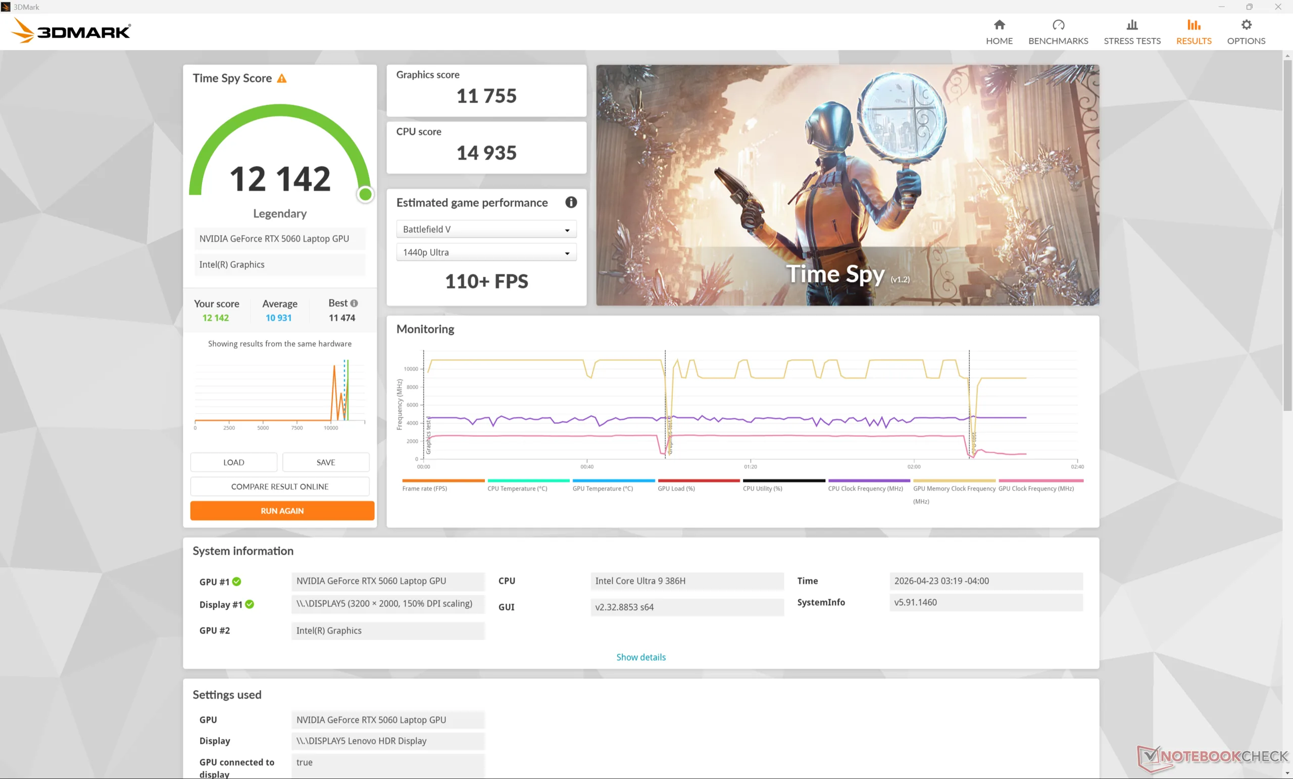 Nossa unidade de teste é a configuração superior equipada com a GPU GeForce RTX 5060 de 100 W e a tela touchscreen OLED Tandem de 3200 x 2000 por aproximadamente US$ 3100. As SKUs mais baratas vêm com a RTX 5050 ou 2880 x 1800 OLED, mas todas as opções vêm com a mesma CPU Core Ultra 9 386H Panther Lake.