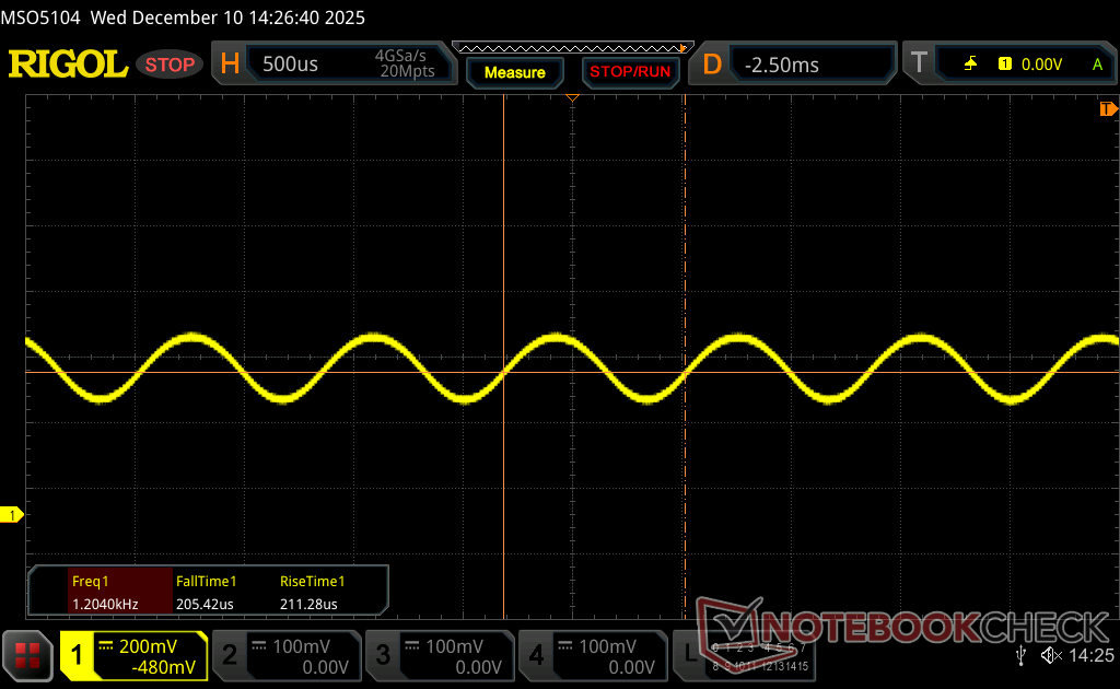 Subjetivamente, a tela OLED tandem fosca da nossa unidade de teste parece mais granulada do que uma alternativa brilhante tradicional, especialmente ao exibir uma imagem totalmente branca. No entanto, ela ainda se destaca na reprodução de HDR por seus níveis de brilho muito altos, especialmente para um painel OLED. Nossas medições independentes com um colorímetro X-Rite mostram um brilho máximo de 566 nits no modo SDR e 1430 nits no modo HDR, que se aproximam dos valores anunciados de 600 nits e 1500 nits, respectivamente. No entanto, se a tela sensível ao toque e os recursos HDR não forem importantes, a opção de 2400p pode valer mais a pena por sua contagem mais densa de pixels.