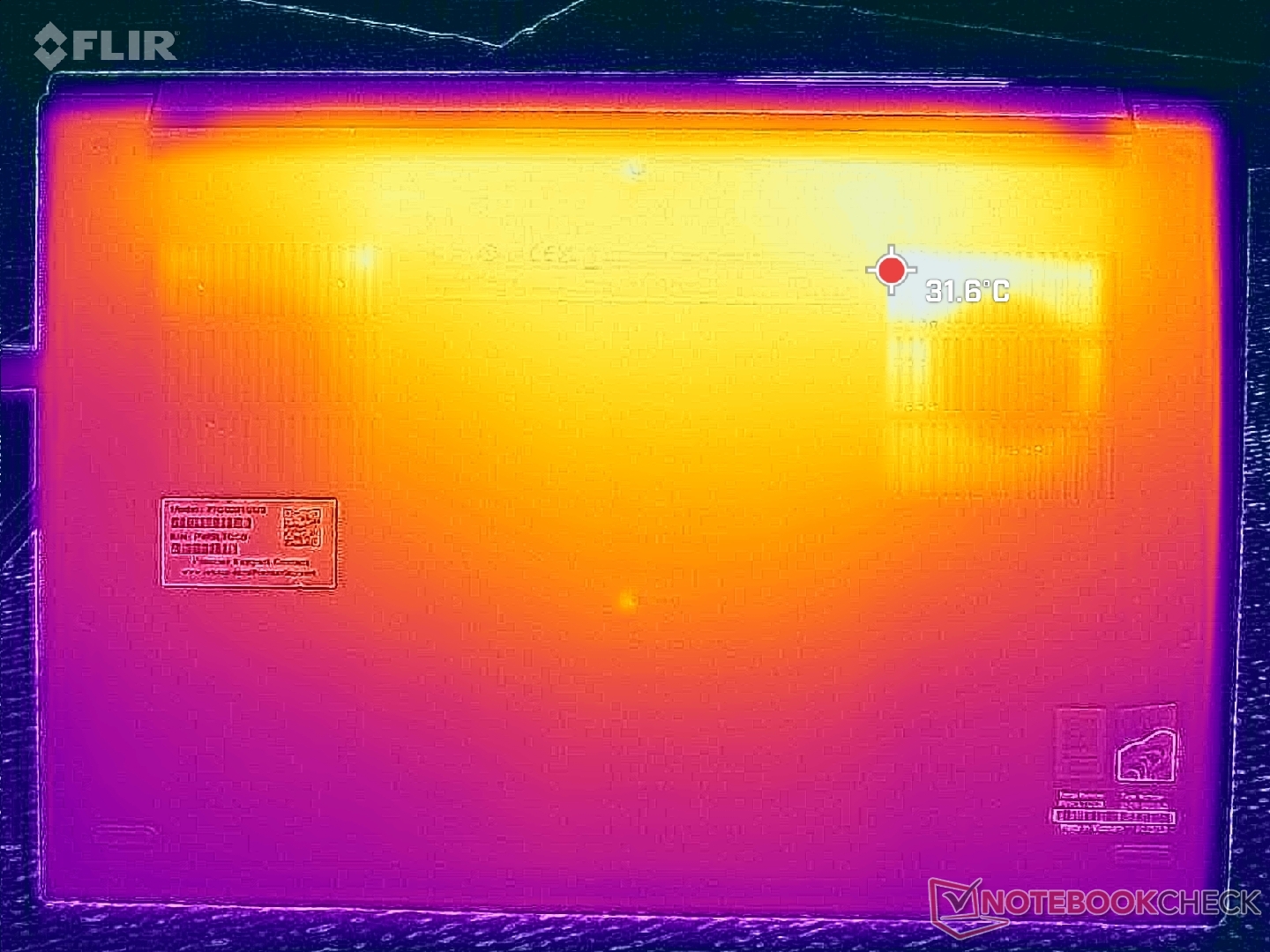 (+) Os apoios para as mãos e o touchpad são mais frios que a temperatura da pele, com um máximo de 23.2 °C / 73.8 F e, portanto, são frios ao toque.