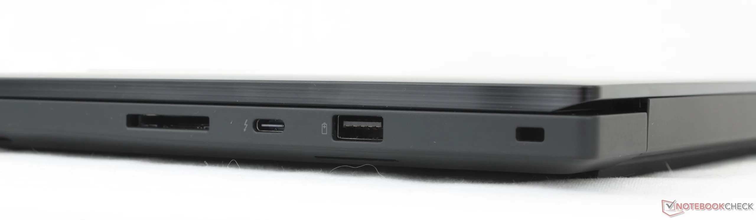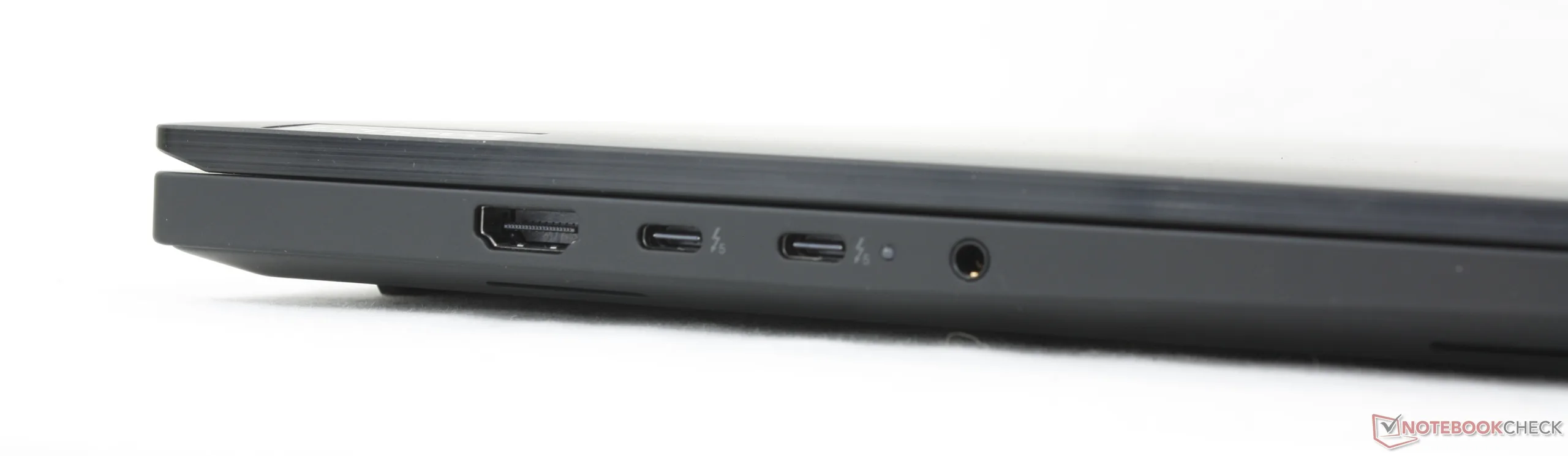 Embora o chassi e as dimensões permaneçam os mesmos de antes, o modelo da Geração 8 apresenta algumas mudanças notáveis nas portas em relação à Geração 7. O suporte para Thunderbolt 5 agora está presente, enquanto a porta proprietária do adaptador CA foi abandonada em favor do USB-C apenas para fornecimento de energia. Assim, uma das três portas USB-C sempre será ocupada pela alimentação do adaptador CA, o que não acontecia com o modelo do ano passado.