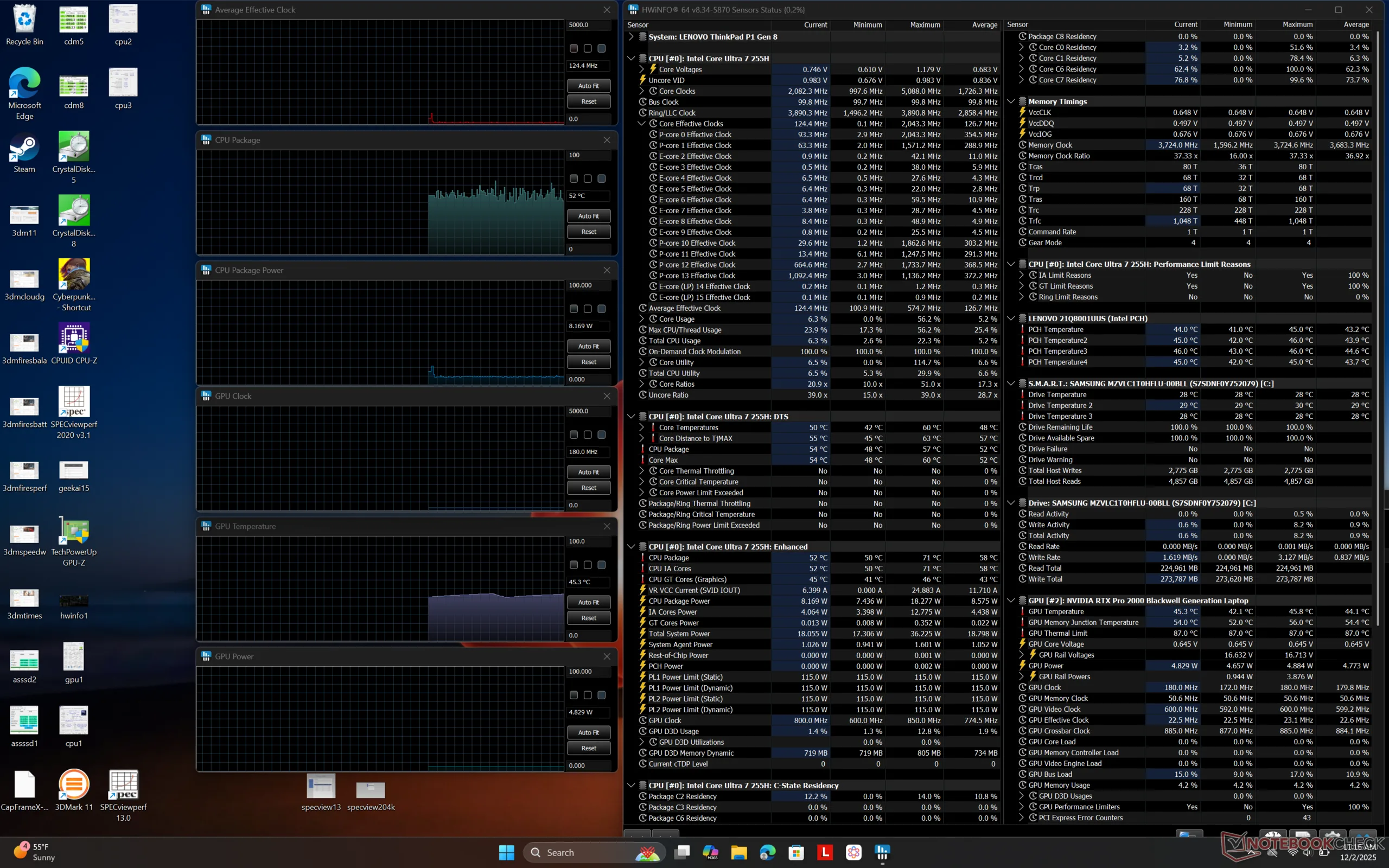 | Lenovo ThinkPad P1 Gen 8 Ultra 7 255H, RTX PRO 2000 Blackwell Generation Laptop, Samsung PM9E1 1 TB MZVLC1T0HFLU, Tandem OLED, 3200x2000, 16" | Lenovo ThinkPad P16s Gen 4 21RX000YGE Ryzen AI 9 HX PRO 370, Radeon 890M, Micron 3500 1TB MTFDKBA1T0TGD, IPS LED, 1920x1200, 16" | Lenovo ThinkPad P1 Gen 7 21KV001SGE Ultra 7 155H, GeForce RTX 4060 Laptop GPU, Kioxia XG8 KXG8AZNV1T02, IPS LED, 2560x1600, 16" | HP ZBook X G1i 16 Ultra 7 265H, RTX PRO 2000 Blackwell Generation Laptop, Samsung PM9A1 MZVL22T0HBLB, IPS, 2560x1600, 16" | Dell Pro Max 16 Plus Ultra 9 285HX, RTX PRO 5000 Blackwell Generation Laptop, SK hynix PCB01 HFS001TFM9X186N, OLED, 3840x2400, 16" | Asus ExpertBook B6 Flip B6602FC2 i9-12950HX, RTX A2000 Laptop GPU, Samsung PM9A1 MZVL21T0HCLR, IPS, 2560x1600, 16" | |