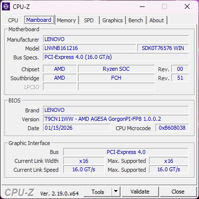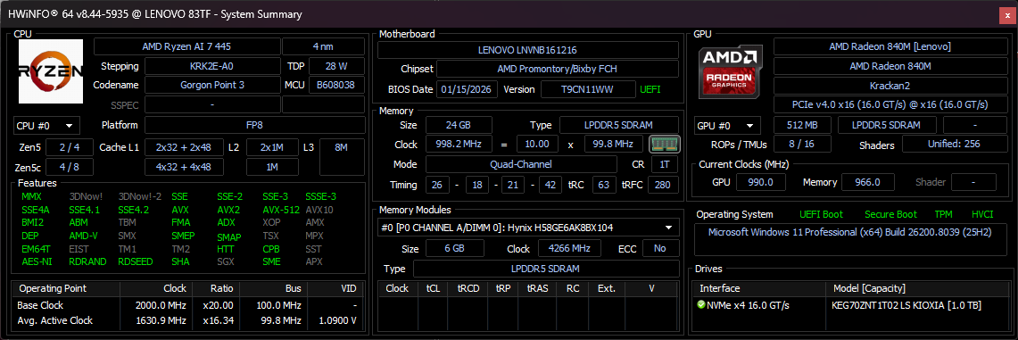 Para contornar a desvantagem da CPU e ainda manter o OLED, os usuários podem querer pular o decepcionante Ryzen AI 7 445 SKU para o significativamente melhor e mais rápido Ryzen AI 9 465. Por outro lado, esse mesmo modelo 2026 também vem com opções Intel Panther Lake para uma eficiência energética geralmente melhor do que a da AMD. A experiência do usuário é essencialmente idêntica à do 2023, 2024e 2025 do Yoga 7 2 em 1 16.