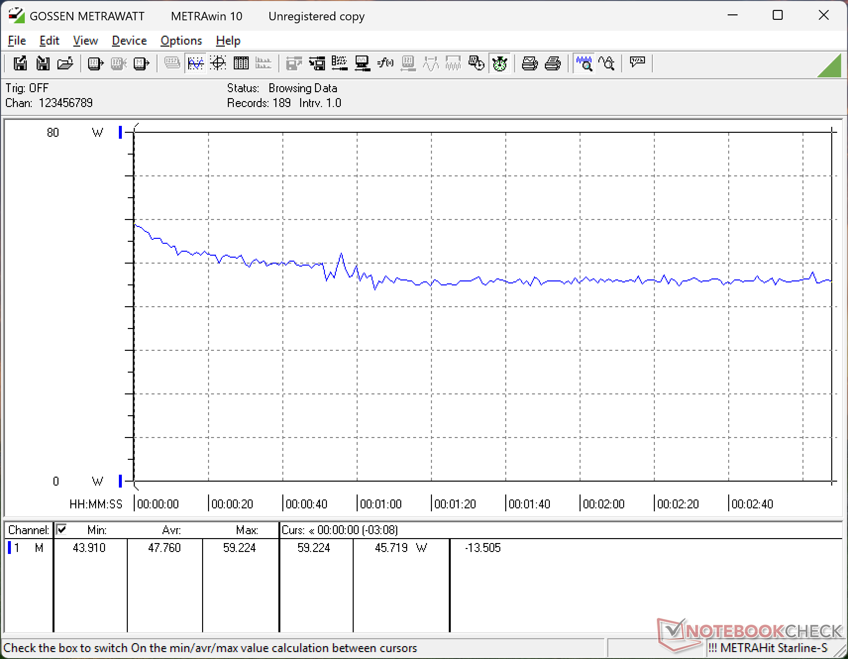 Os tempos de execução não são nem de longe tão longos quanto os da versão Lunar Lake-V desse modelo, com uma diferença de várias horas entre eles. No entanto, mais de 12 horas de navegação em WLAN provavelmente são mais do que suficientes para a maioria dos usuários.