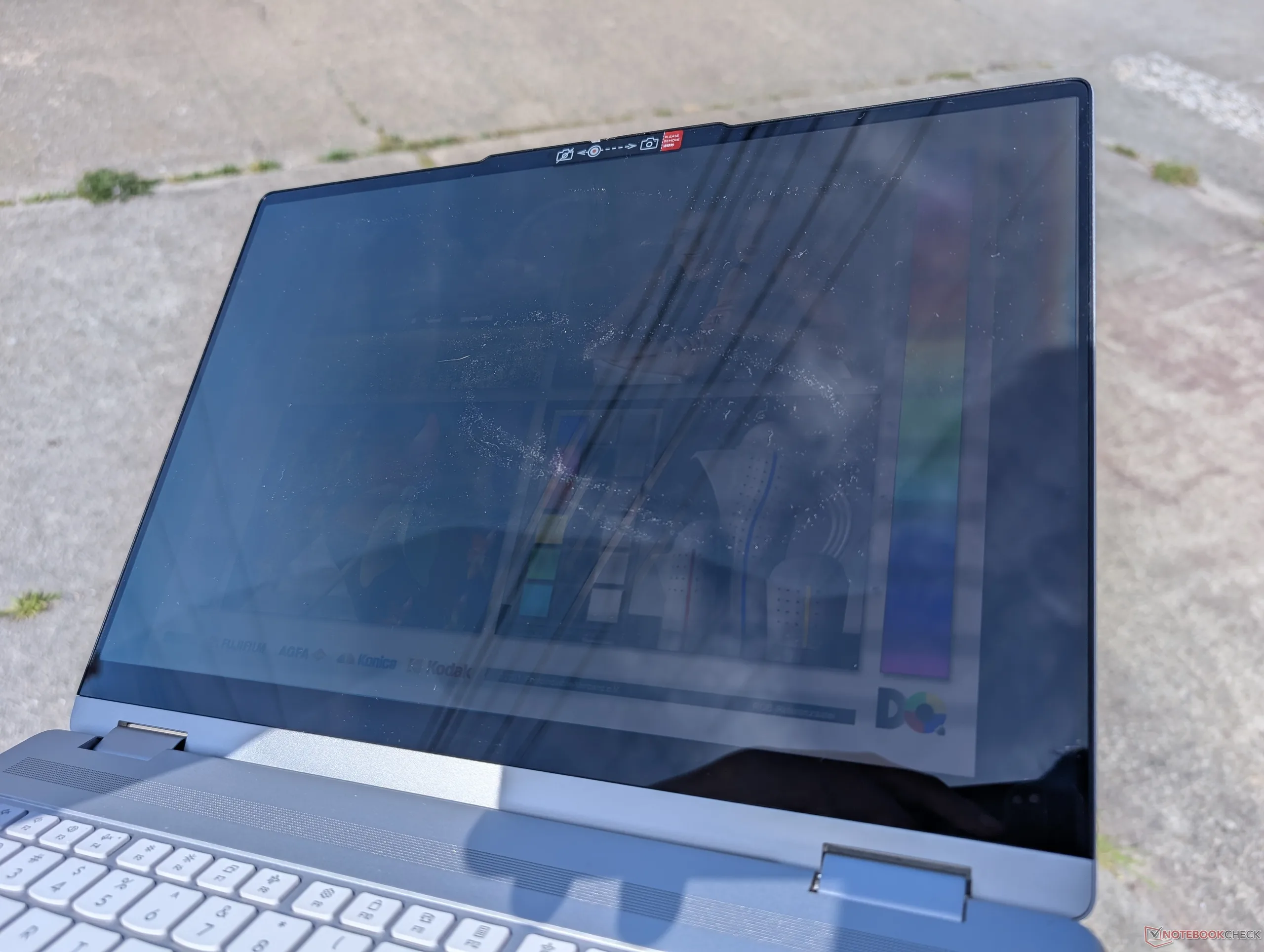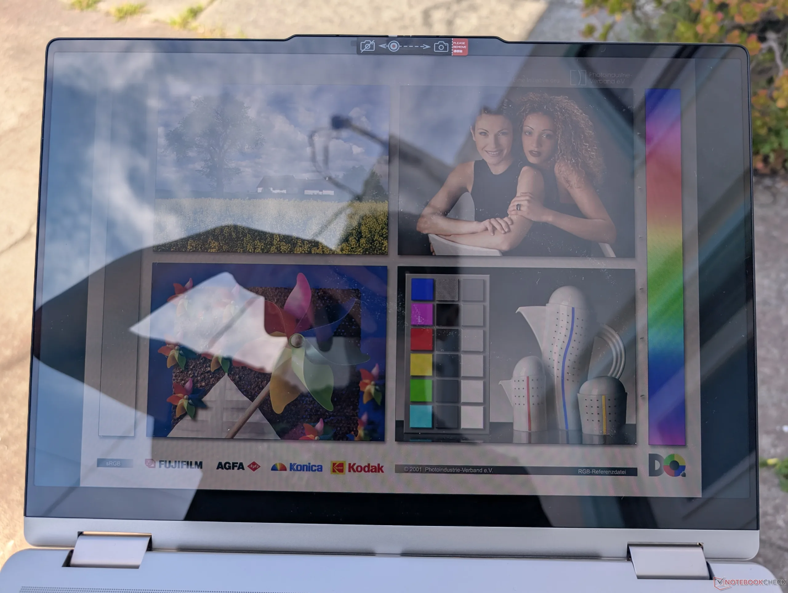 Uma de nossas principais reclamações sobre o Yoga 7 2 em 1 16 com tecnologia Intel do ano passado do ano passado foi a falta de opções OLED, pois a única opção IPS tinha cores relativamente ruins para uma tela tão grande. Por outro lado, a CPU Lunar Lake foi extremamente eficiente, com bom desempenho gráfico e uma duração de bateria ainda melhor. Para 2026, a Lenovo finalmente incluiu configurações OLED opcionais para cores mais profundas e vibrantes, mas a nova CPU Ryzen AI 7 445 é menos eficiente e, às vezes, mais lenta do que a opção Lunar Lake Core Ultra 7 256V do ano passado, dependendo da carga de trabalho. Em outras palavras, nossa configuração de teste AMD 2026 troca o desempenho e a eficiência do processador por melhores opções de tela, o que faz com que pareça um passo à frente e um passo atrás em muitos aspectos.