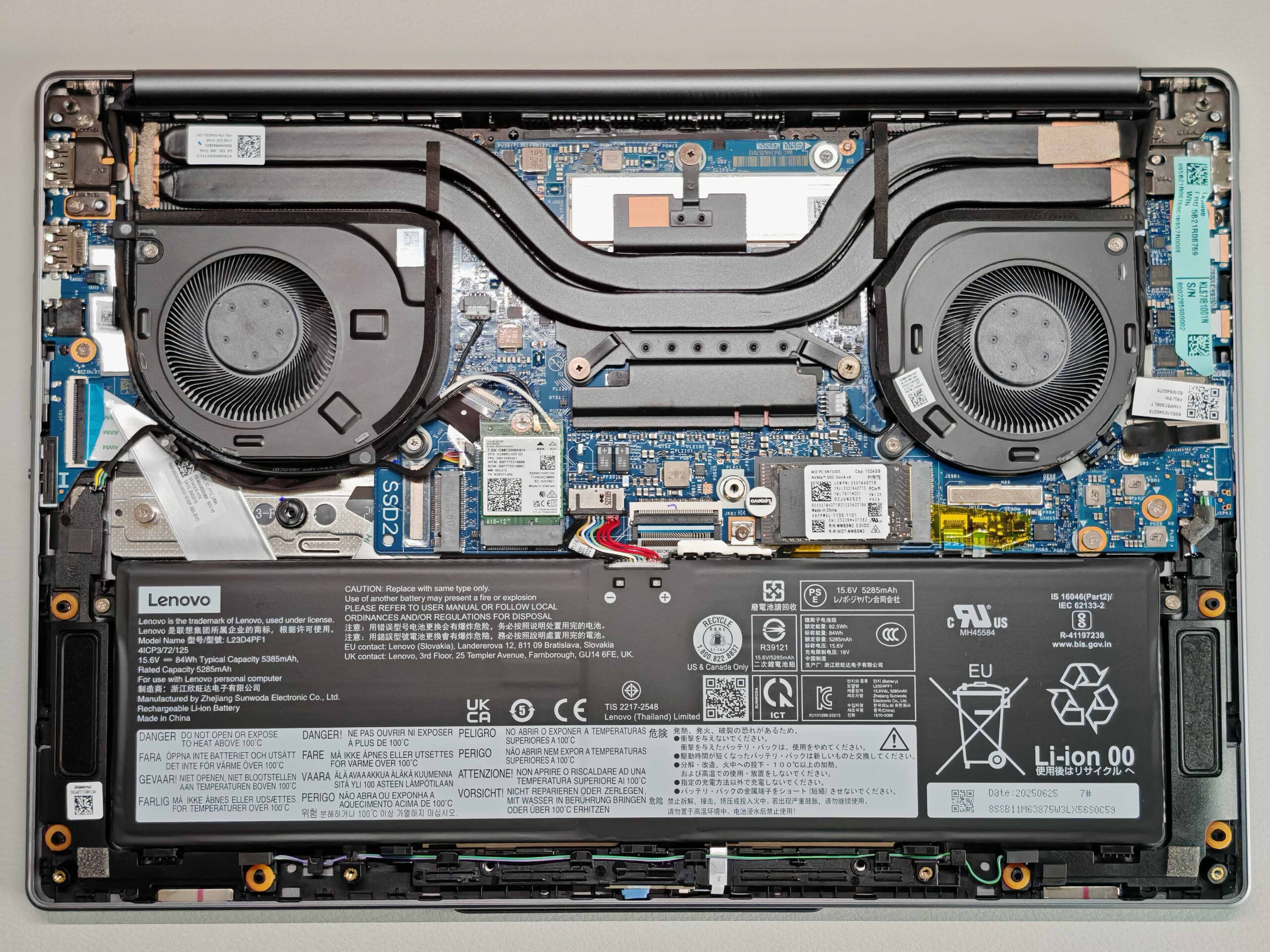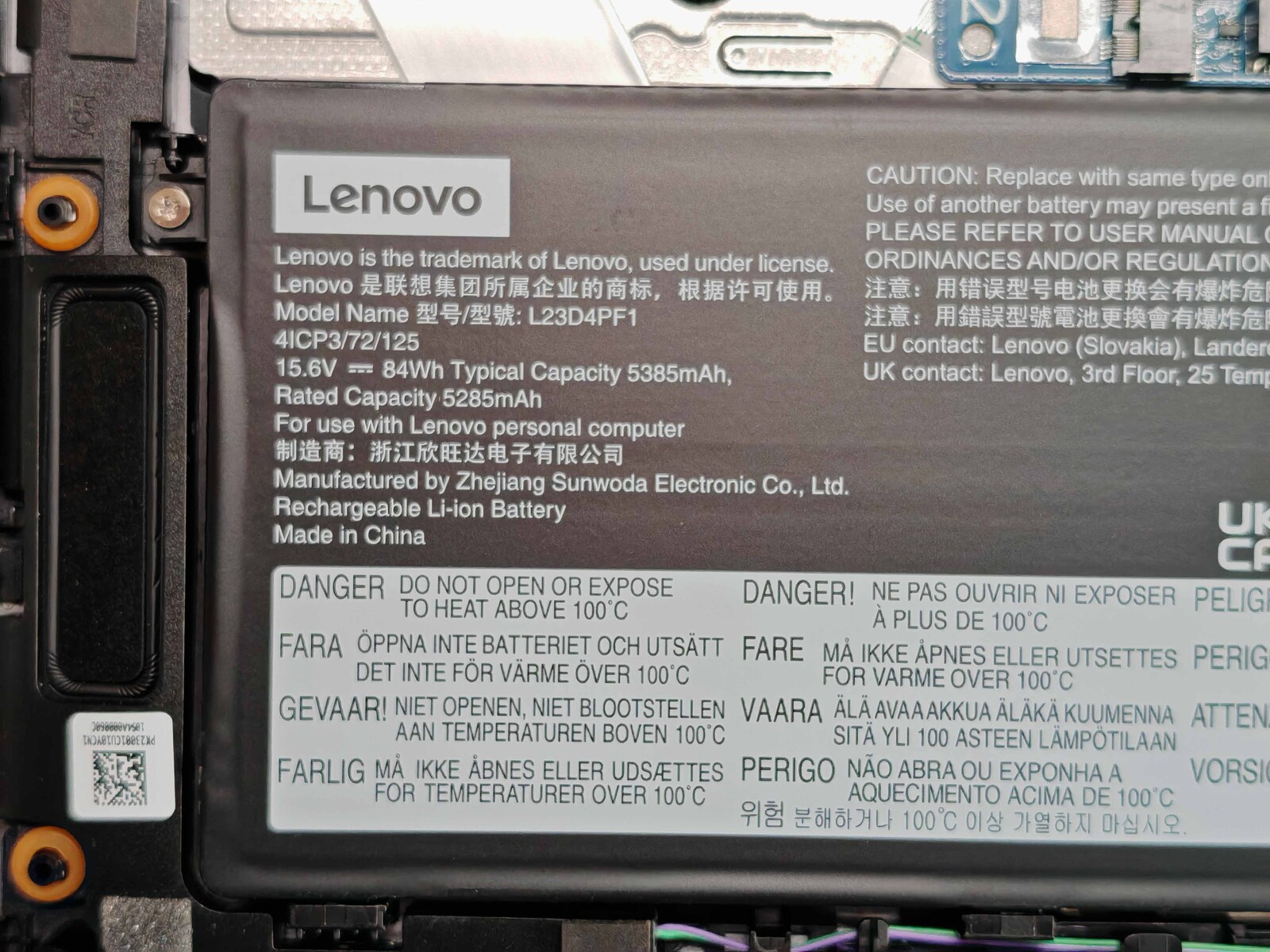 Os limites de alta potência também causam outros problemas, pois a fonte de alimentação de 100 watts fornecida é muito fraca sob carga total, e é por isso que a bateria precisa ser aproveitada. Além disso, o resfriamento é muito alto, 48 dB(A), e a duração da bateria é mais fraca. O motivo pelo qual a Lenovo só fornece o modelo Intel com um leitor de cartões é um mistério para nós.