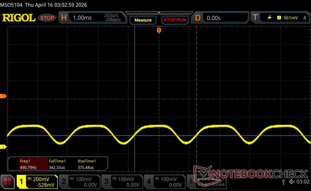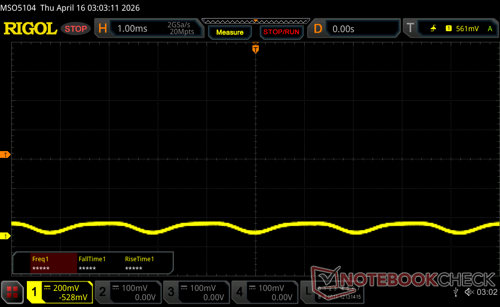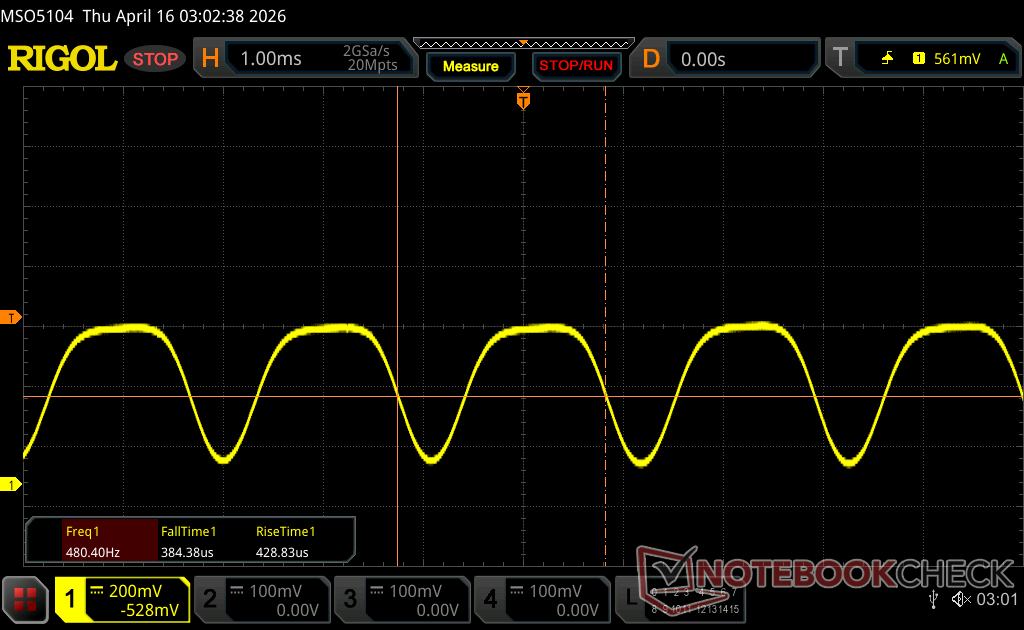 | Tela tremeluzindo/PWM detectado | 479.46 Hz Amplitude: 50 % | ≤ 100 % configuração de brilho | |
