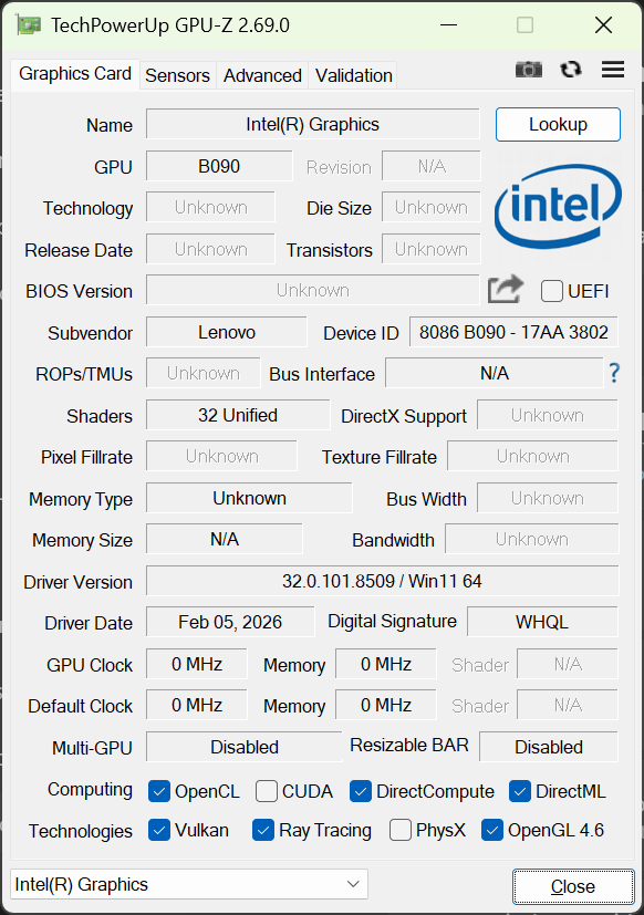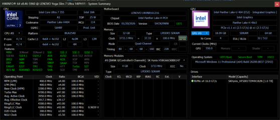 | Lenovo Yoga Slim 7 Ultra 14IPH11 Intel Core Ultra 7 355 ⎘ Intel Graphics 4 Xe3 Panther Lake iGPU ⎘ 32 GB Memória, 1024 GB SSD | Preço de tabela: 1700 USD | 978 g | 13.9 mm | 14.00" 2880x1800 243 PPI OLED | |