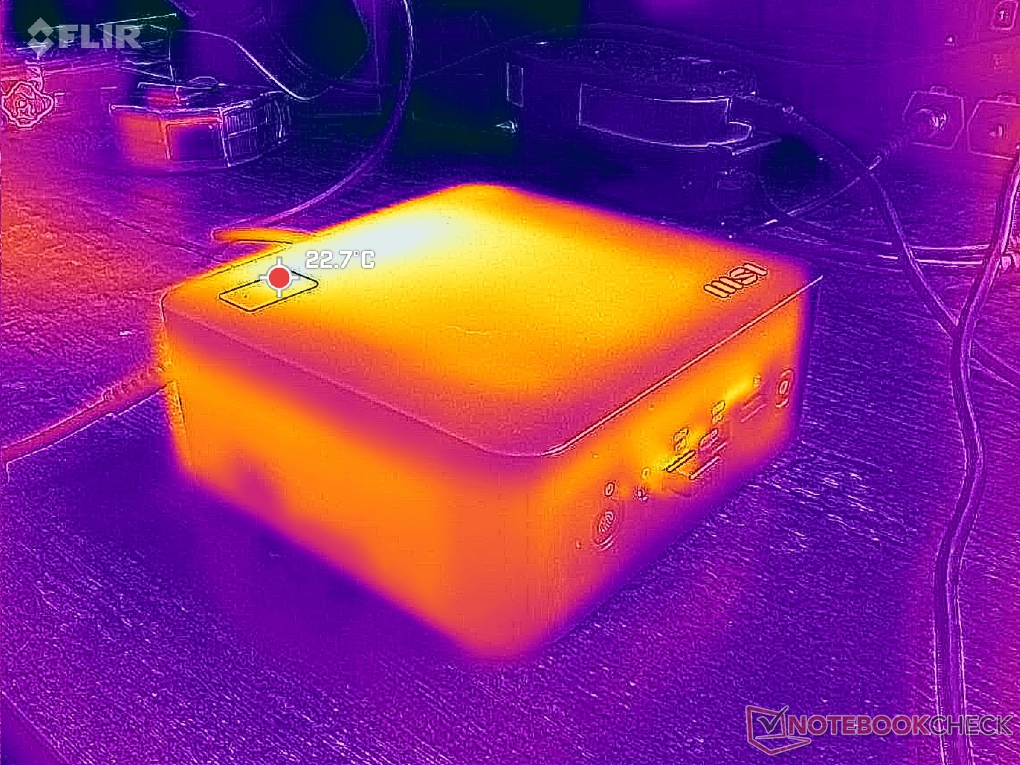 As temperaturas de superfície são pouco quentes, apenas 31 °C, mesmo ao executar aplicativos exigentes, em grande parte devido à construção de plástico e à CPU Intel de baixa potência.