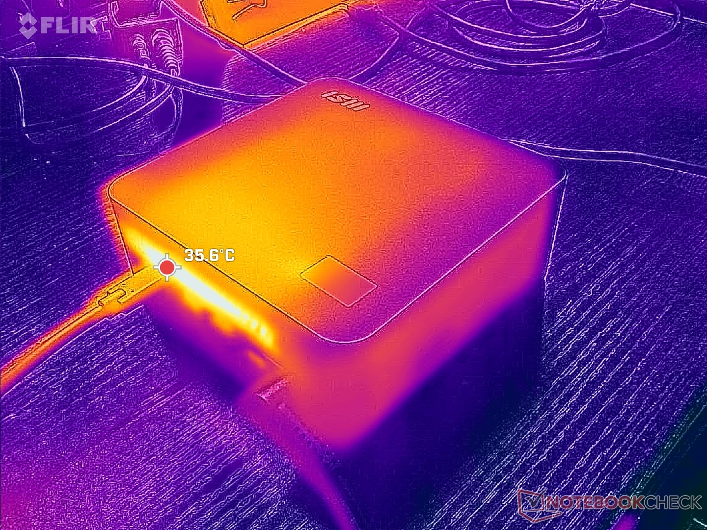 O pequeno adaptador CA de 120 W permaneceria relativamente frio a menos de 35 °C sob carga.