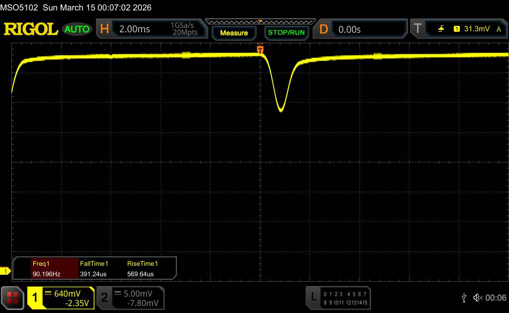 | 1.4 ms ... ascensão ↗ e queda ↘ combinadas | ↗ 0.7 ms ascensão | |